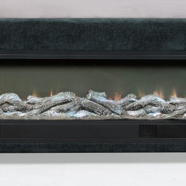 Elevate your bedroom with this sophisticated upholstered bed in a stunning dark blue fabric. Featuring a modern wingback headboard, this bed combines bold style with inviting comfort. The footboard boasts a visual flame box insert for a cozy ambiance, complete with 13 color options, adjustable brightness levels, and a wireless remote control. Crafted from durable pine, plywood, and engineered wood, this bed ensures lasting quality. The integrated Bluetooth speaker enhances functionality, making this bed a modern centerpiece for your space.