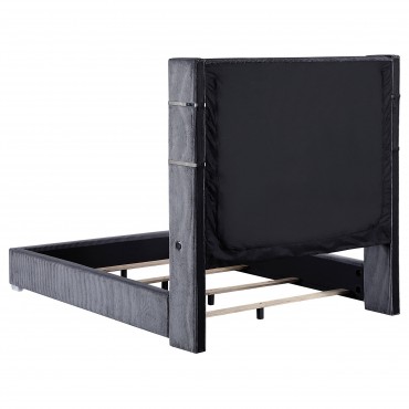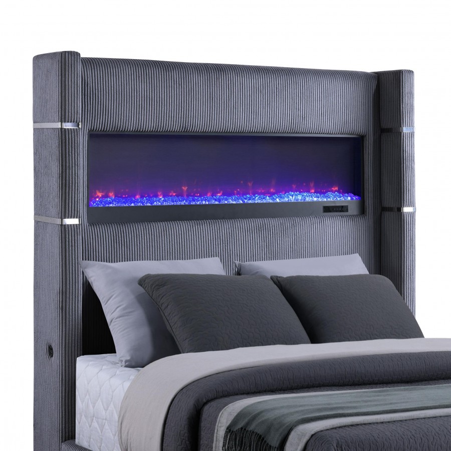 Tisdall Upholstered Queen Flame Visualizer Bed Grey