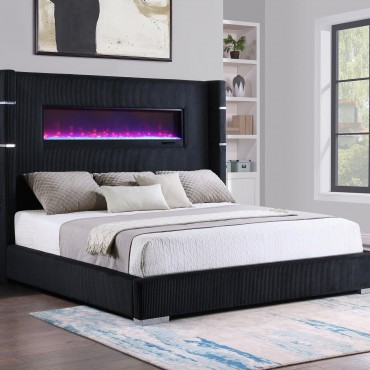 Tisdall Upholstered Cal King Flame Visualizer Bed Black