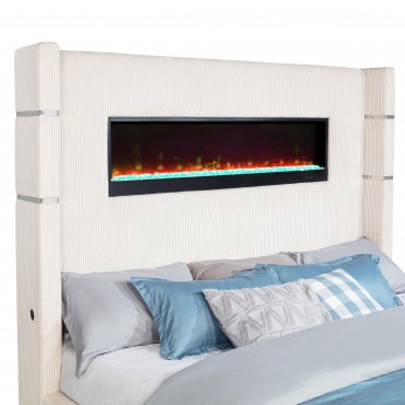 Tisdall Upholstered Eastern King Flame Visualizer Bed Cream