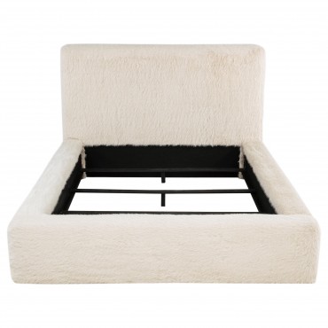 This sophisticated panel bed features cream-colored faux fur upholstery, bringing a luxurious and modern vibe to your bedroom. The padded headboard and clean-lined design create a striking yet cozy focal point. Constructed with birch, plywood, and engineered wood, the frame offers both durability and strength. Wooden slats provide stable box spring foundation support. A perfect blend of soft textures and sleek design, this bed is ideal for contemporary interiors.