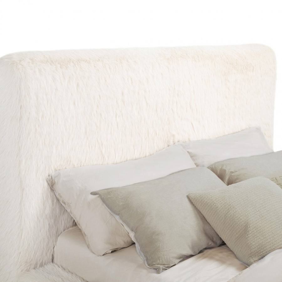 Rebecca Faux Fur Upholstered Eastern King Bed Cream