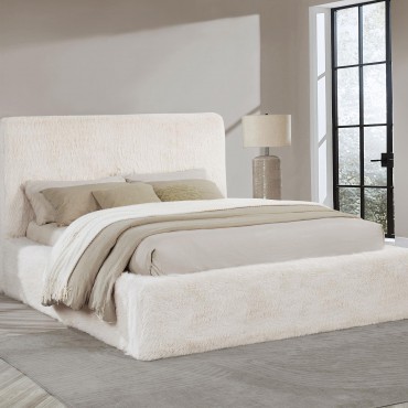 Rebecca Faux Fur Upholstered California King Bed Cream