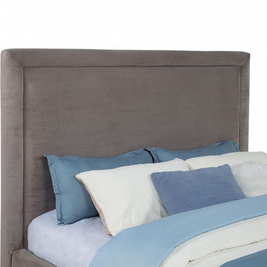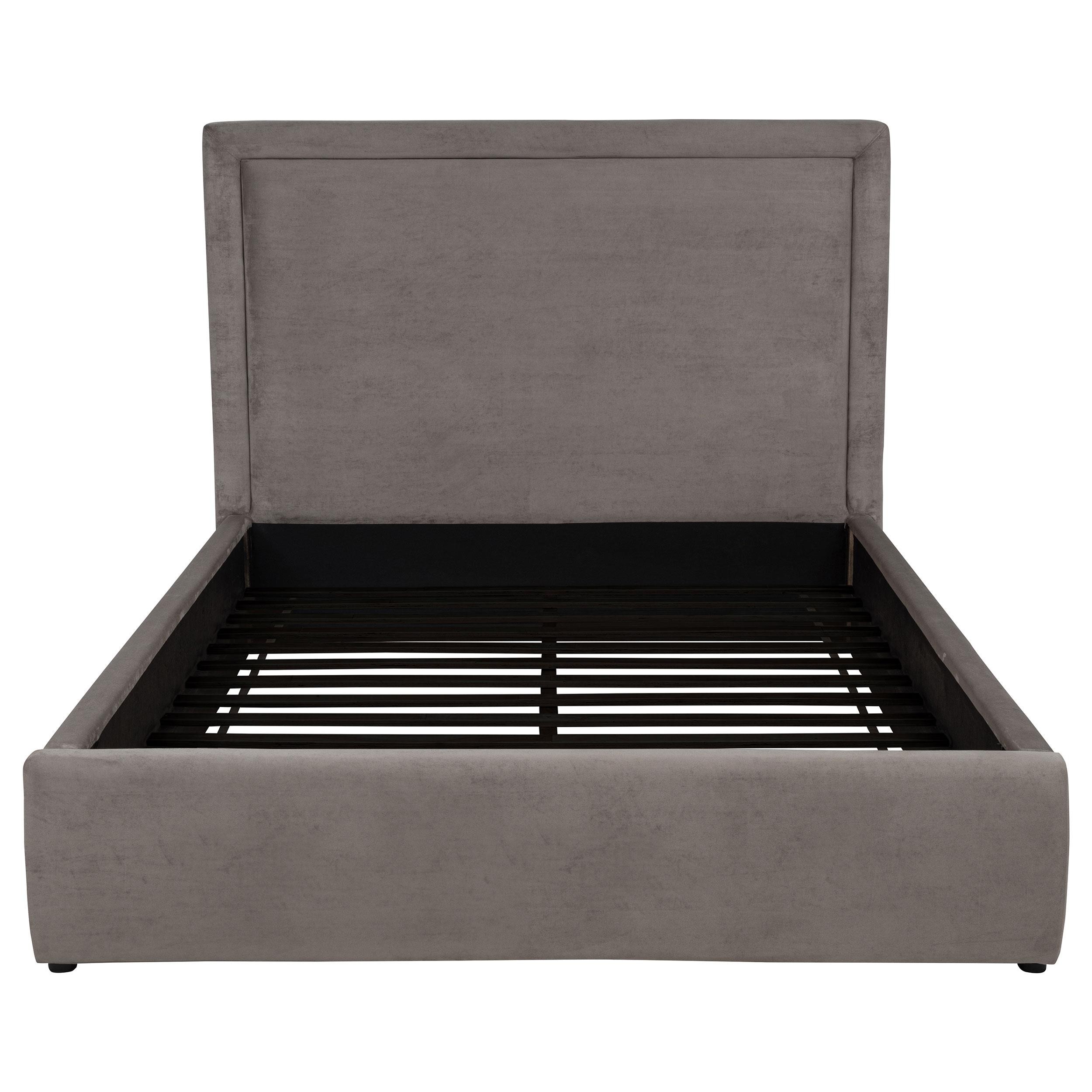 Clean lines and understated elegance define this platform bed, wrapped in smooth upholstery from base to headboard. The simple panel design offers a tailored profile, softened by subtle padding and low foot rails for an inviting finish. With a fully slatted foundation, this bed supports a mattress directly, no box spring needed. Perfect for modern minimalists or transitional spaces, it balances comfort and clarity in a sleek, grounded silhouette.