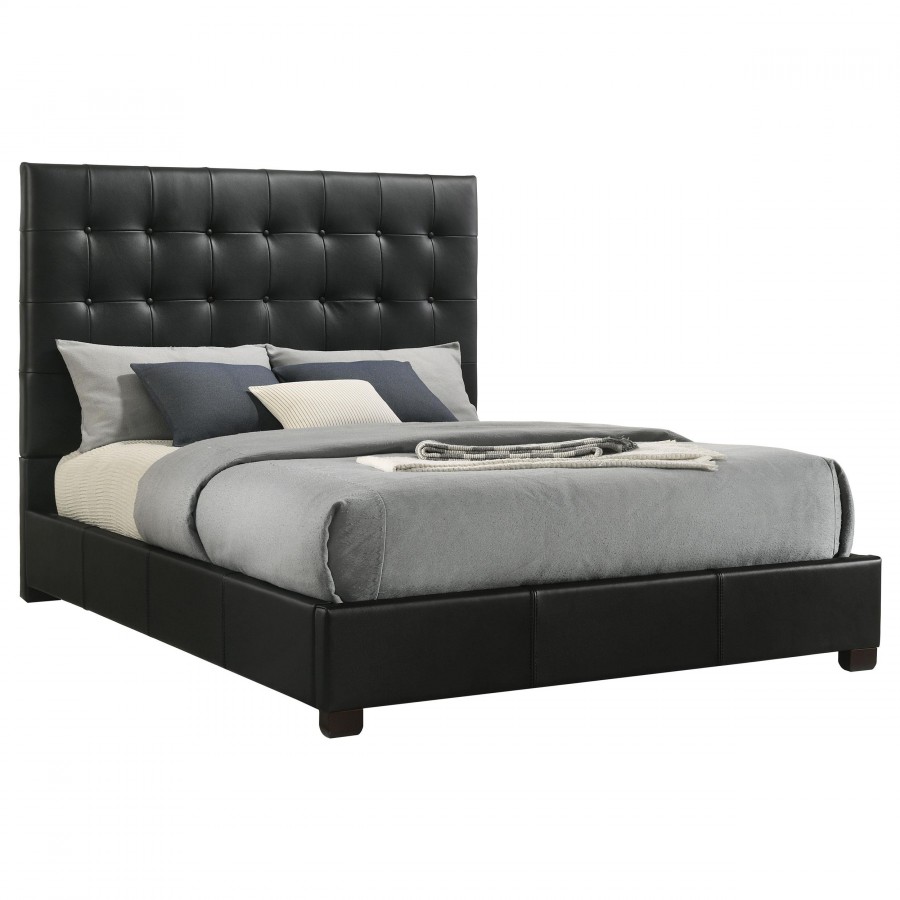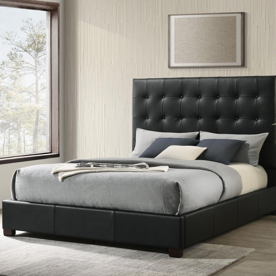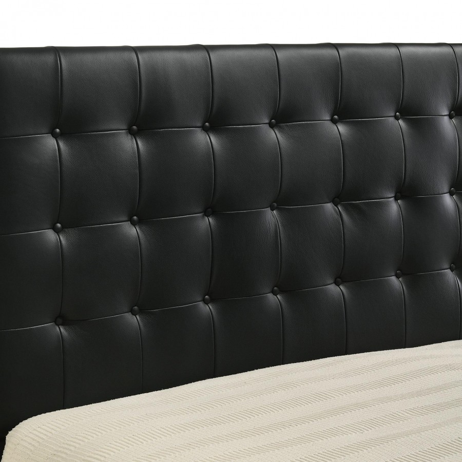 Medley Genuine Leather Queen Panel Platform Bed Black