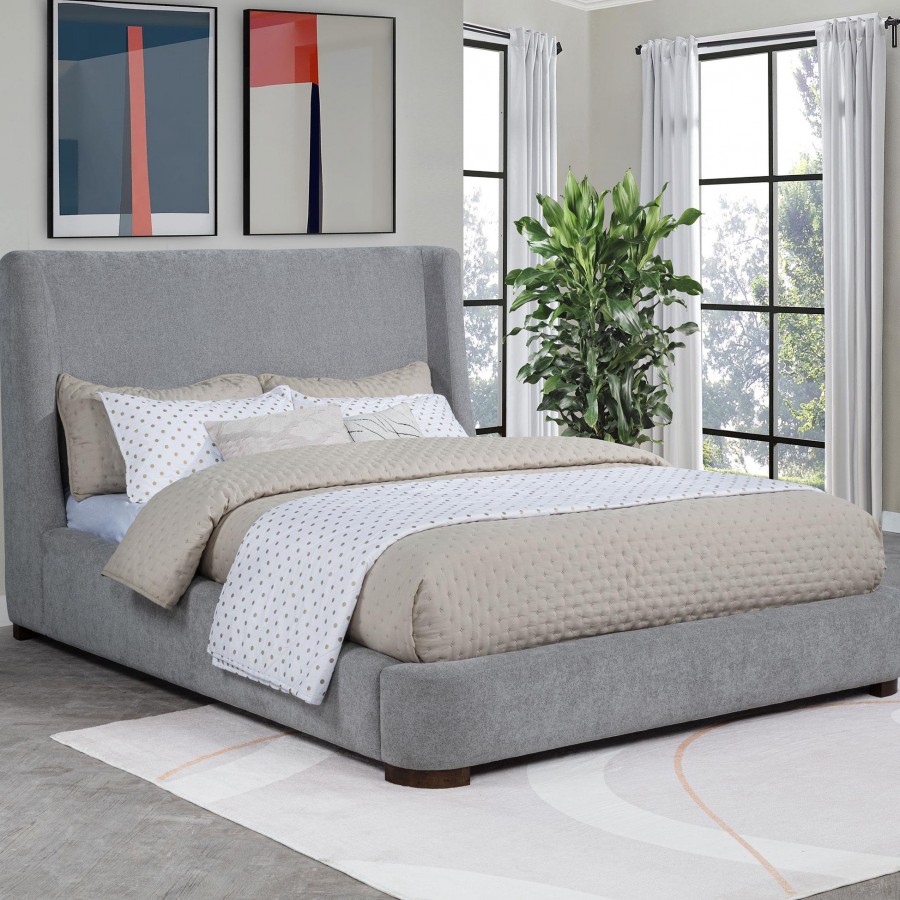 Rennes Upholstered Eastern King Wingback Platform Bed Grey