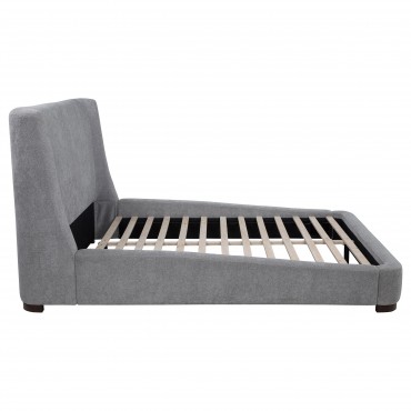 A study in soft curves and refined restraint, this upholstered platform bed brings sculptural poise to any bedroom. The wingback headboard wraps gently around the sleep space, offering both visual embrace and quiet shelter. Upholstered in textured grey fabric and supported by rich walnut-toned legs, it pairs warm contrast with tailored softness. Designed with built-in slats, this platform bed offers strong support without the need for a foundation.