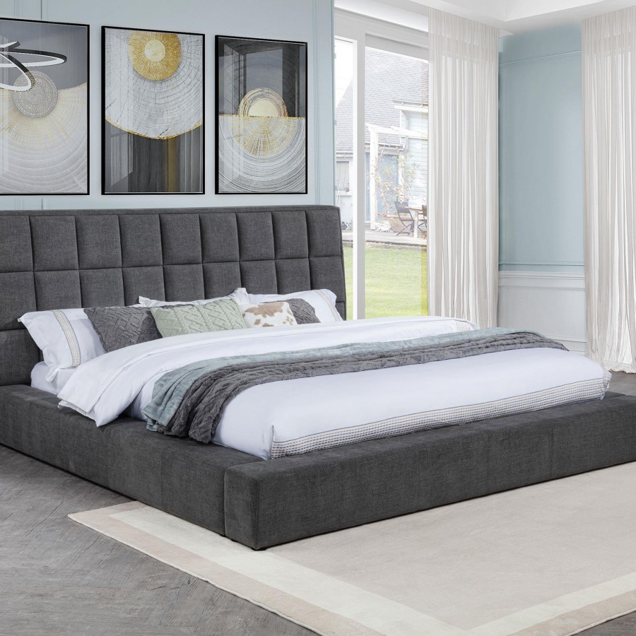 Dreux Upholstered Queen Panel Platform Bed Grey