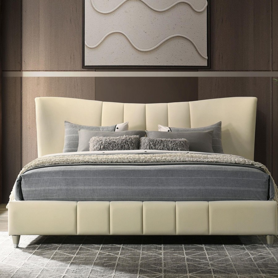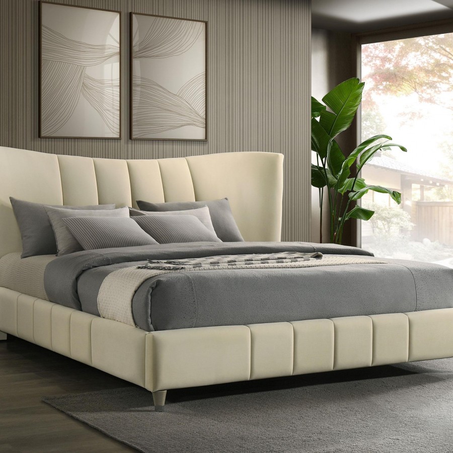 Evelyn Upholstered Eastern King Panel Platform Bed Ivory