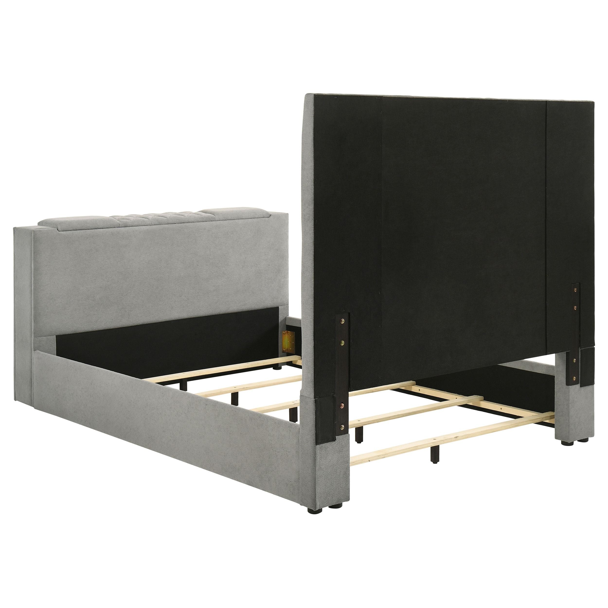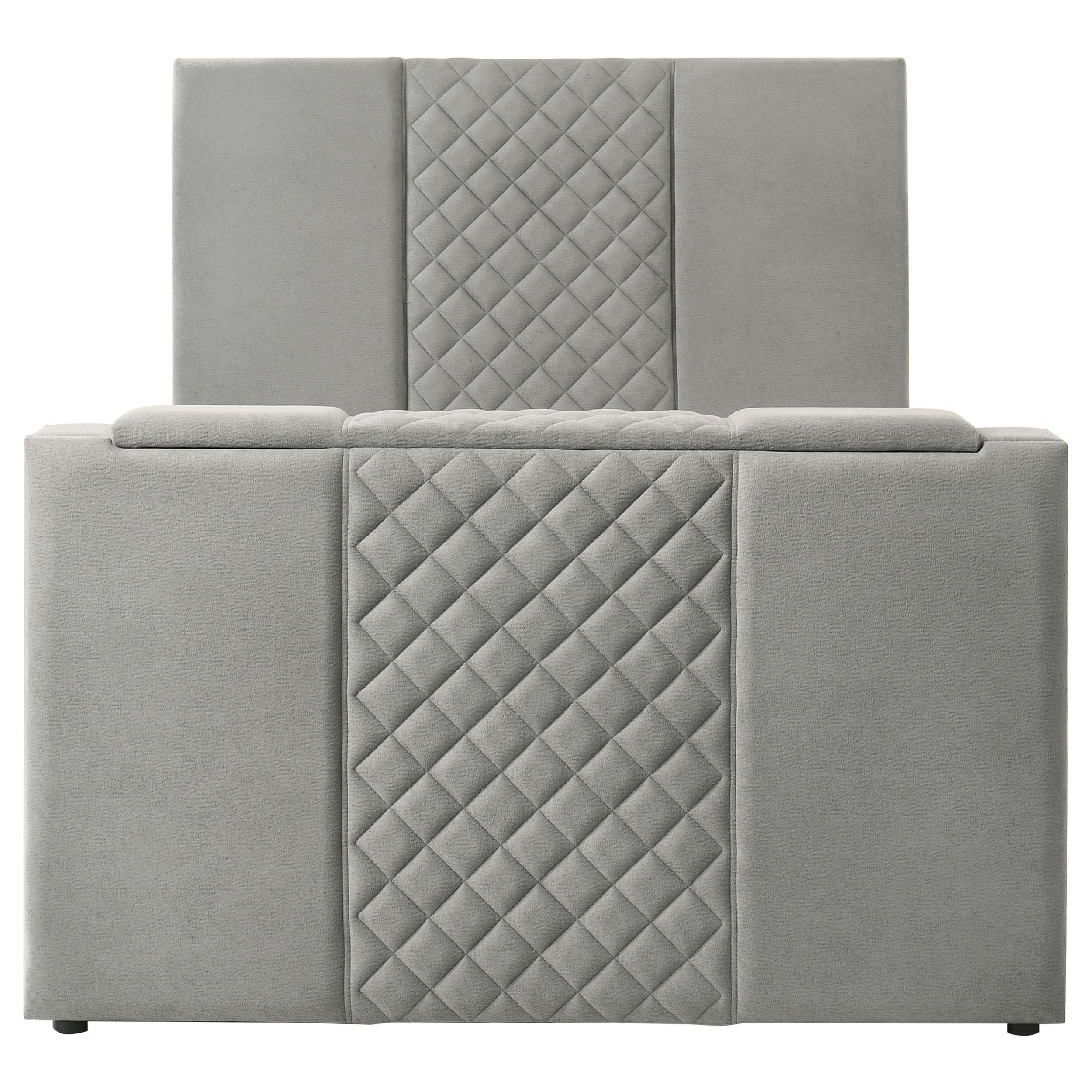 Tara 61-inch Upholstered Queen Panel TV Bed Grey