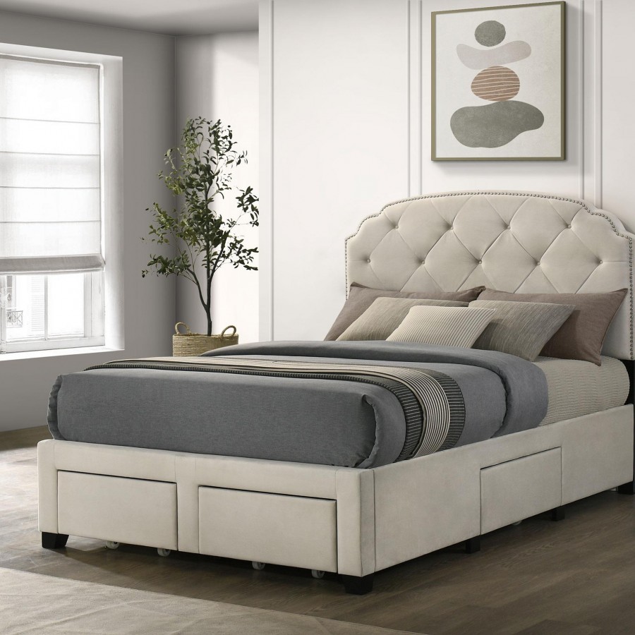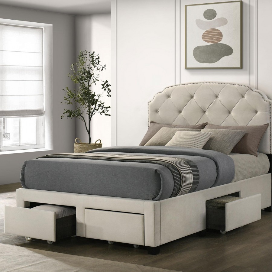 Marianna 4-drawer Upholstered Full Storage Bed Cream