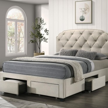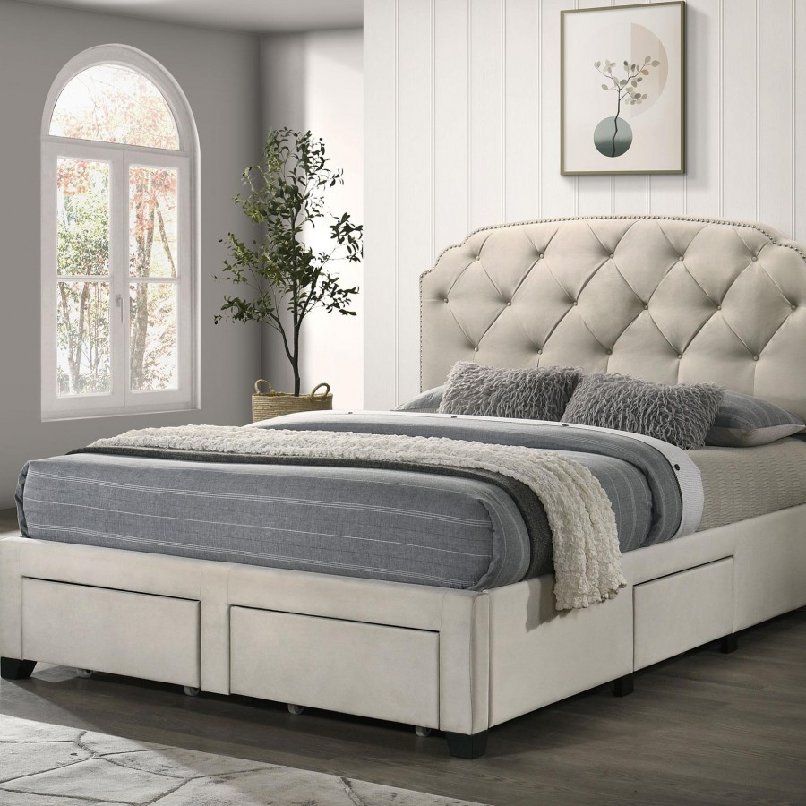 Marianna 4-drawer Upholstered Queen Storage Bed Cream