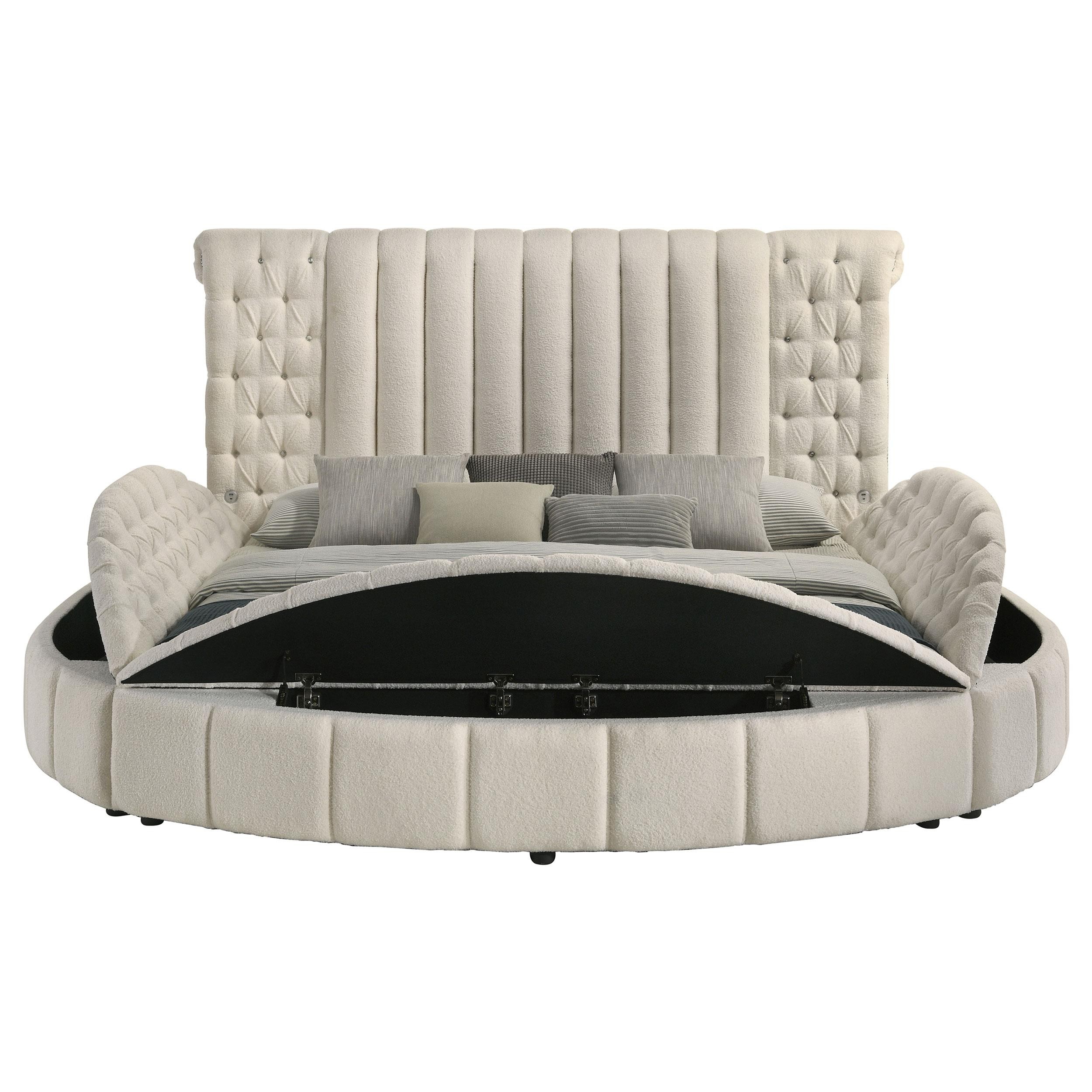 Sonya Upholstered Eastern King Round Storage Bed Ivory
