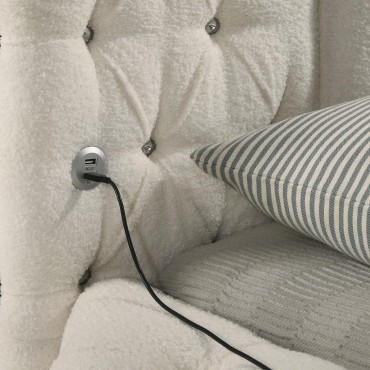 Make a bold statement in your bedroom with this luxurious round-bench bed, designed to elevate your space into a glamorous retreat. The elegant ivory bouclé fabric features exquisite channeled tufting, adorned with sparkling acrylic buttons that shimmer with every glance. Adding to the functionality, USB charging ports are conveniently located on both sides of the headboard, allowing you to stay connected without leaving the comfort of your bed. The design brings a unique blend of modern luxury and timeless elegance, perfect for creating a dramatic yet cozy atmosphere.