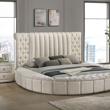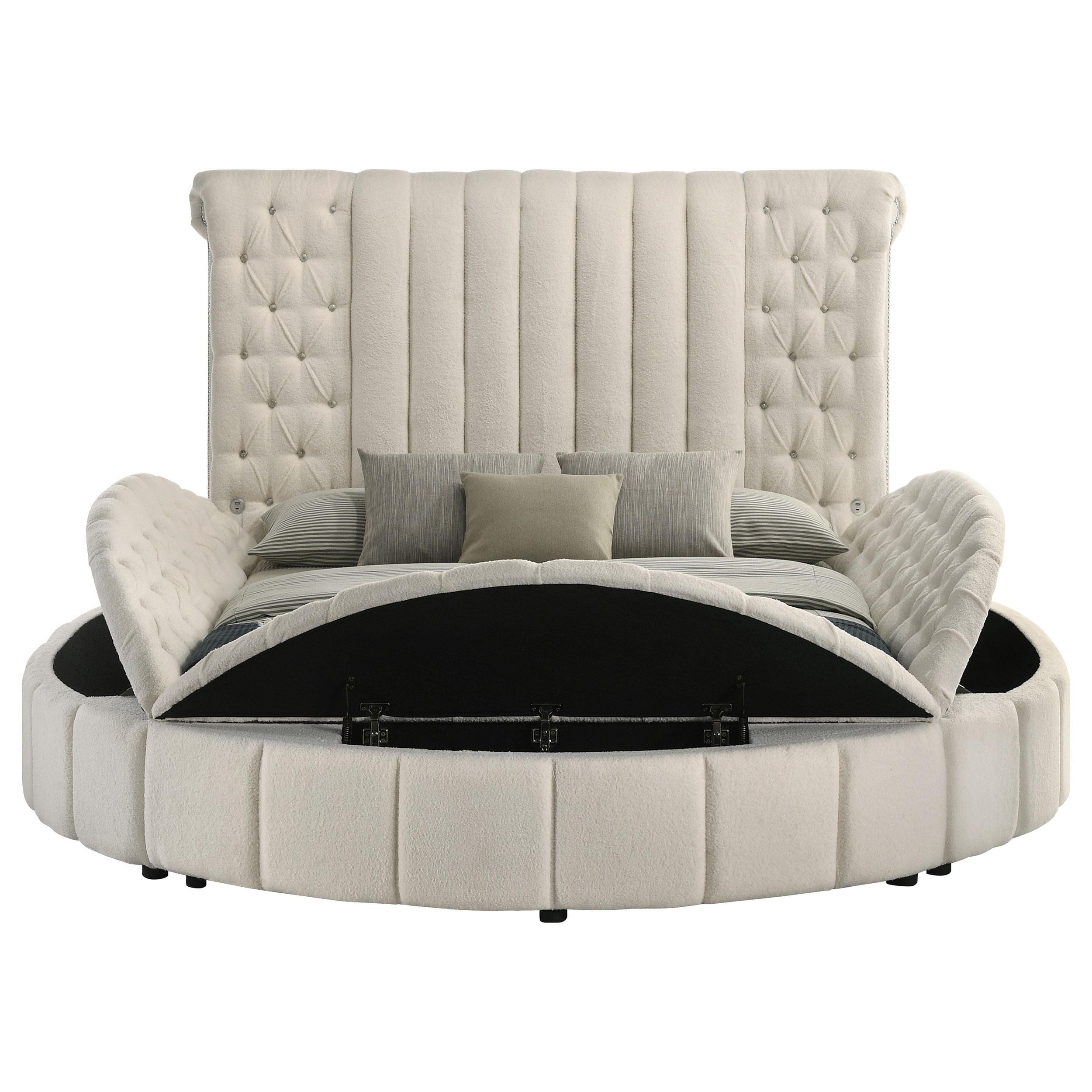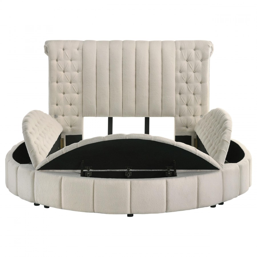 Sonya Upholstered Queen Round Storage Bed Ivory