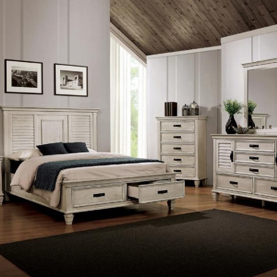 Franco Wood Eastern King Storage Panel Bed Distressed White