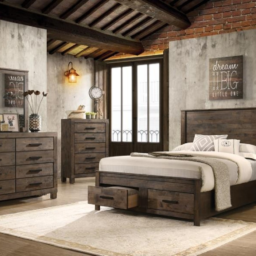 Woodmont Eastern King Storage Bed Rustic Golden Brown