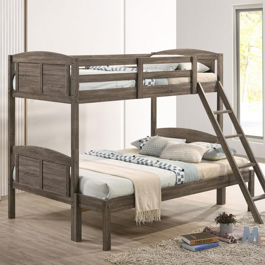 Flynn Wood Twin Over Full Bunk Bed with Mattress Weathered Brown