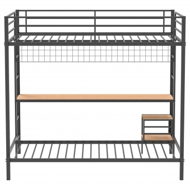 Campus Metal Full Over Twin Workstation Bunk Bed Matte Black