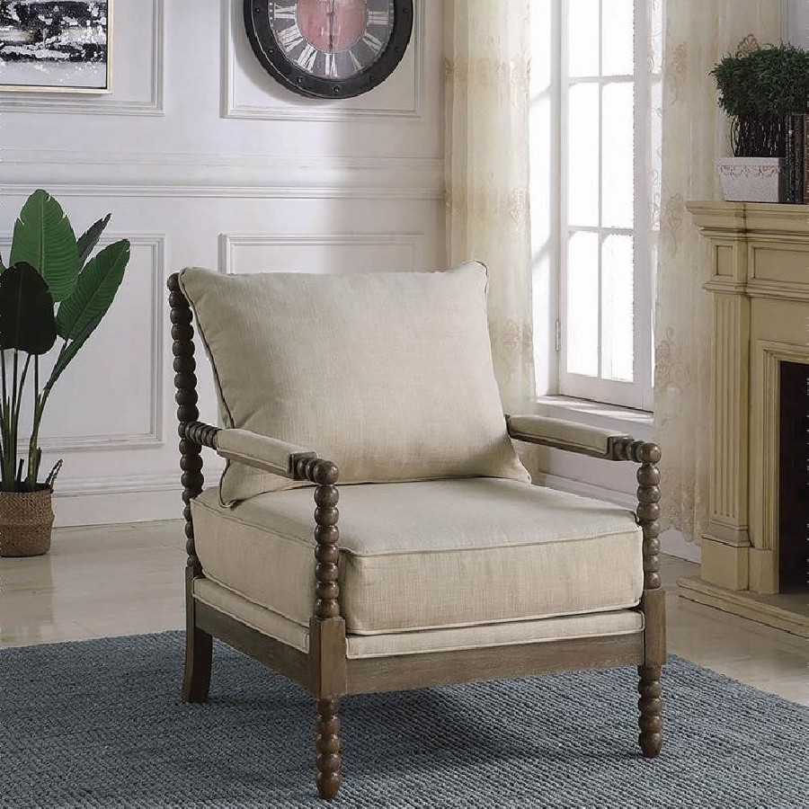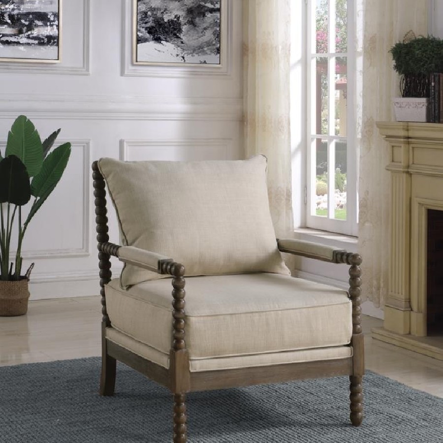 Blanchett Upholstered Bobbin Accent Chair Beige and Natural