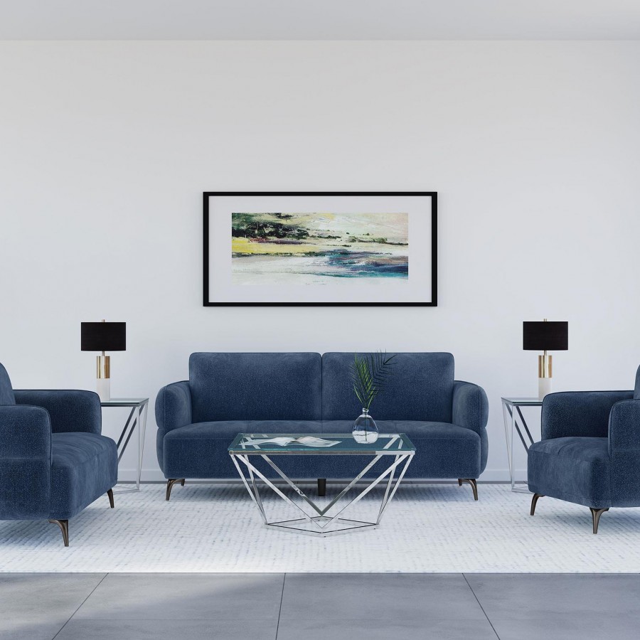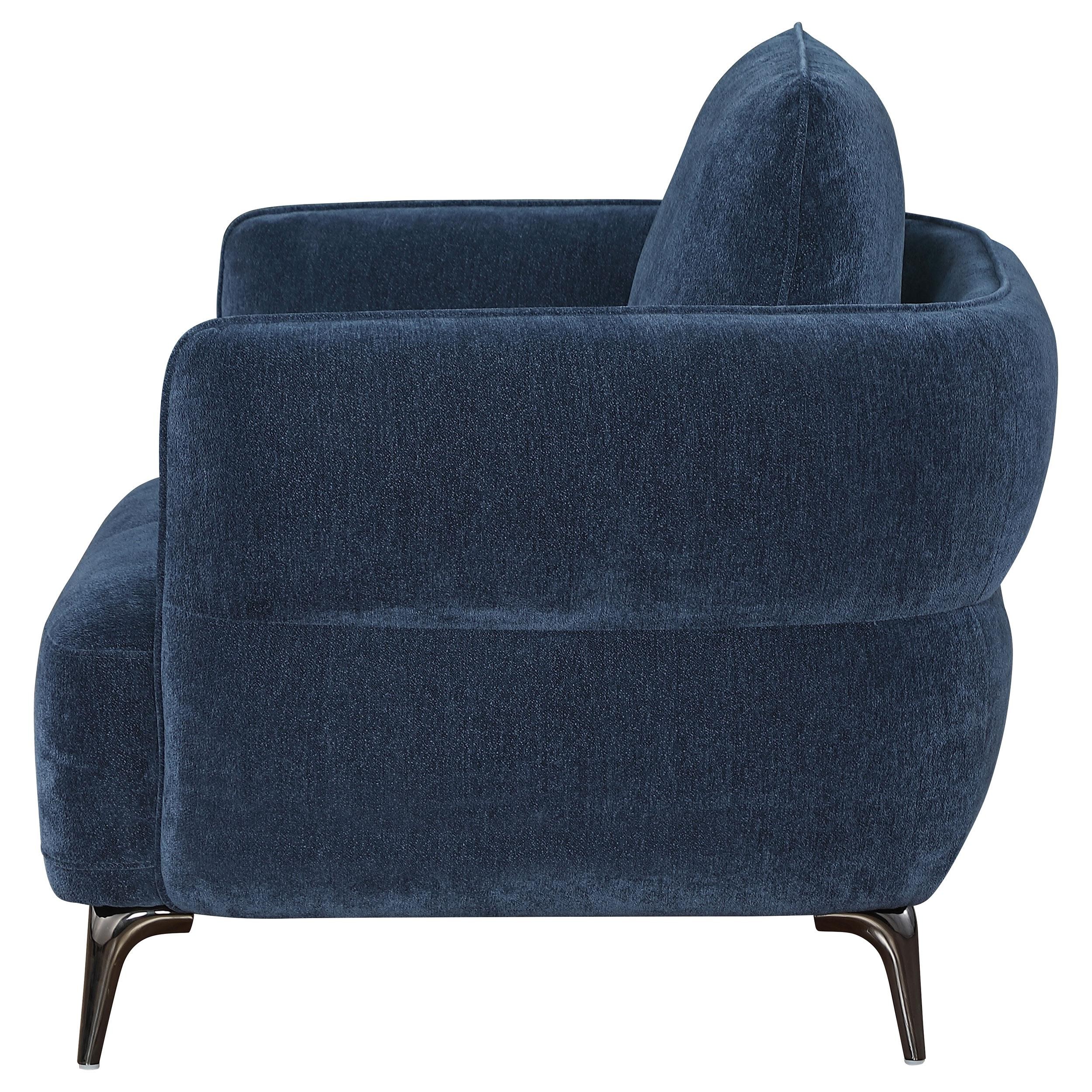 Lively Chenille Upholstered Modern Track Arm Chair Blue