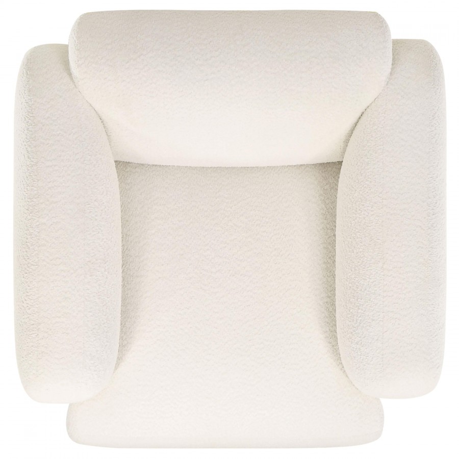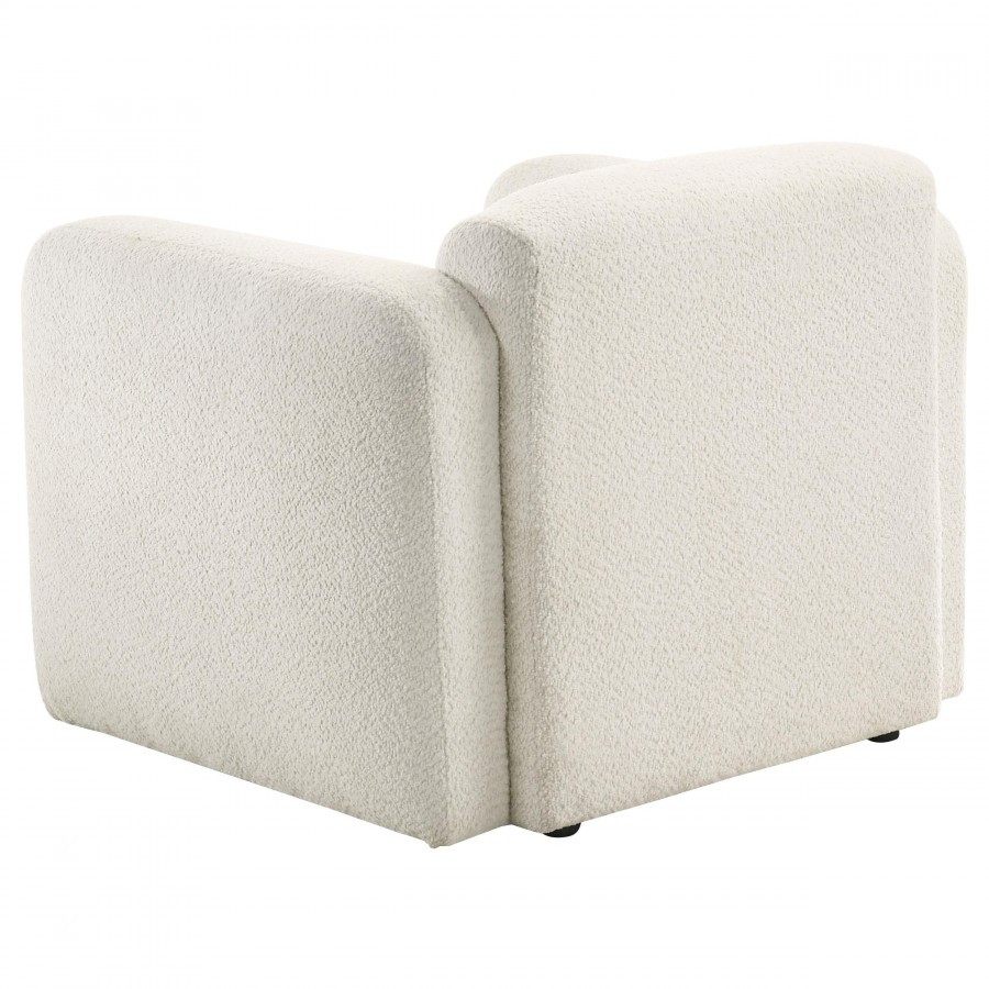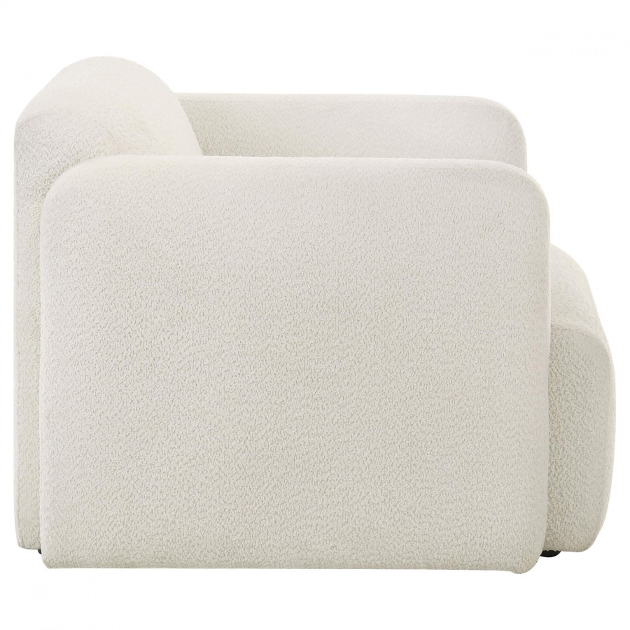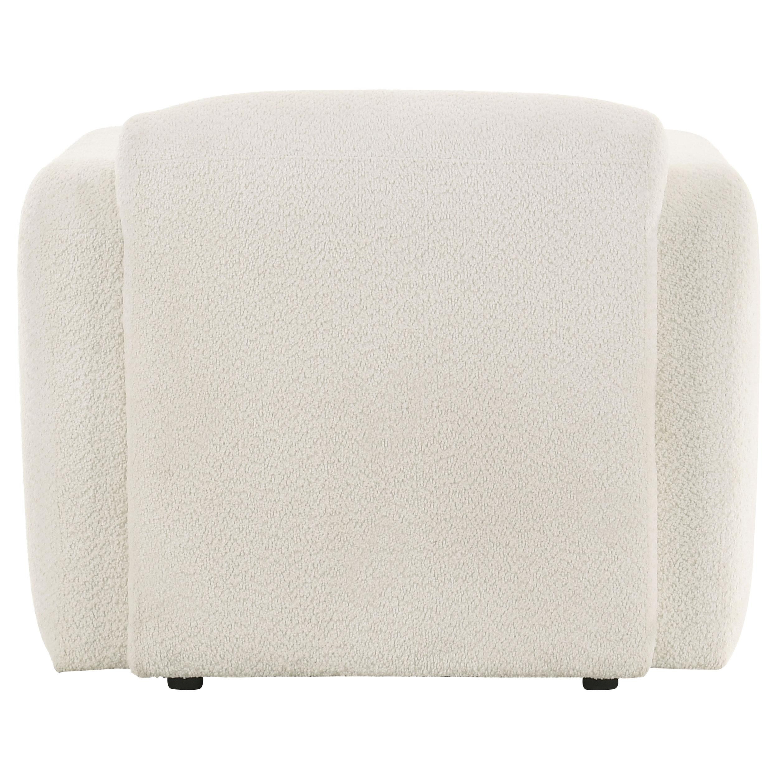 This modern accent chair brings sculptural softness and deep comfort to any living space. Wrapped in a richly textured fabric, its rounded frame flows from low-profile back to wide track arms with effortless ease. Plush foam cushioning and pocket coil seating deliver the ideal blend of sink-in softness and lasting support. With its minimal silhouette and gentle curves, this chair adds a cozy yet elevated presence to any room.