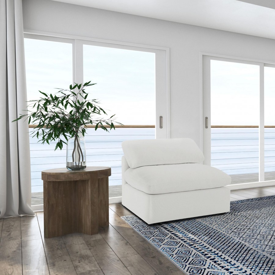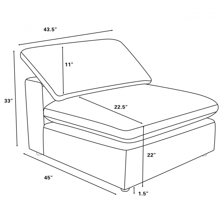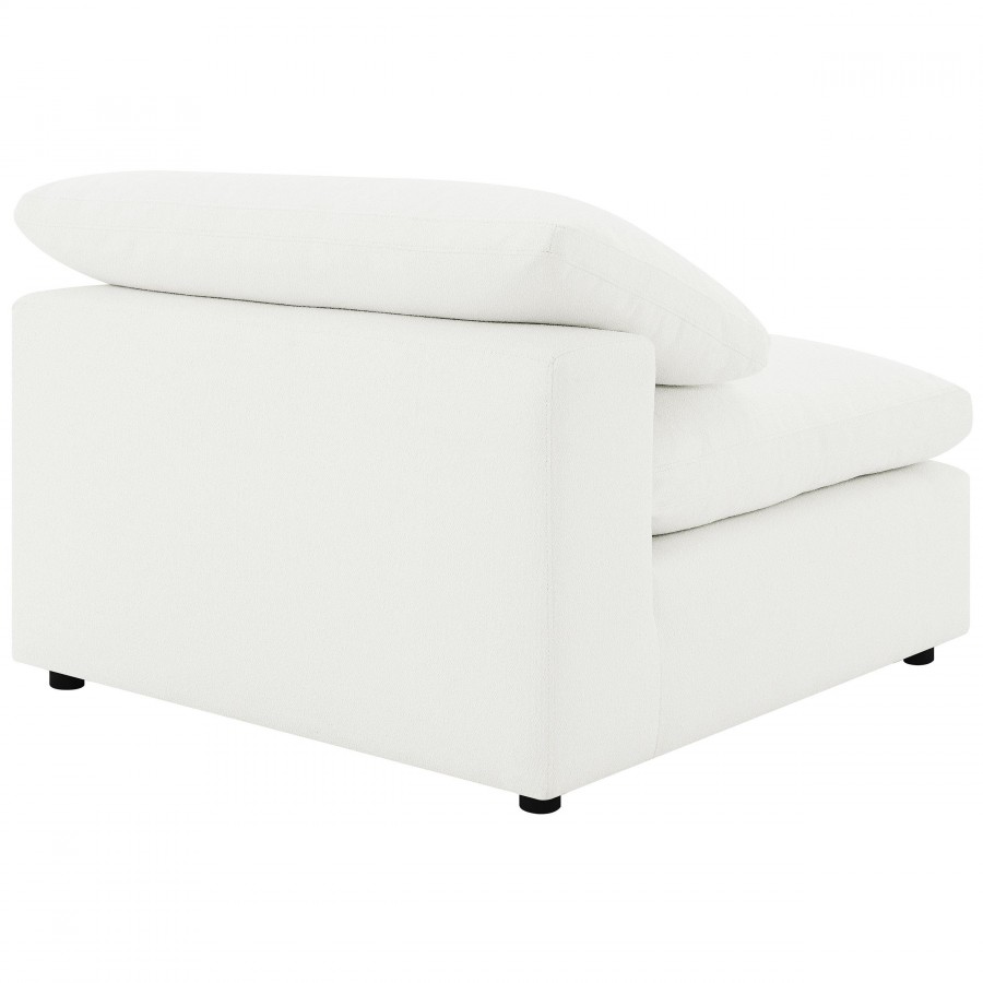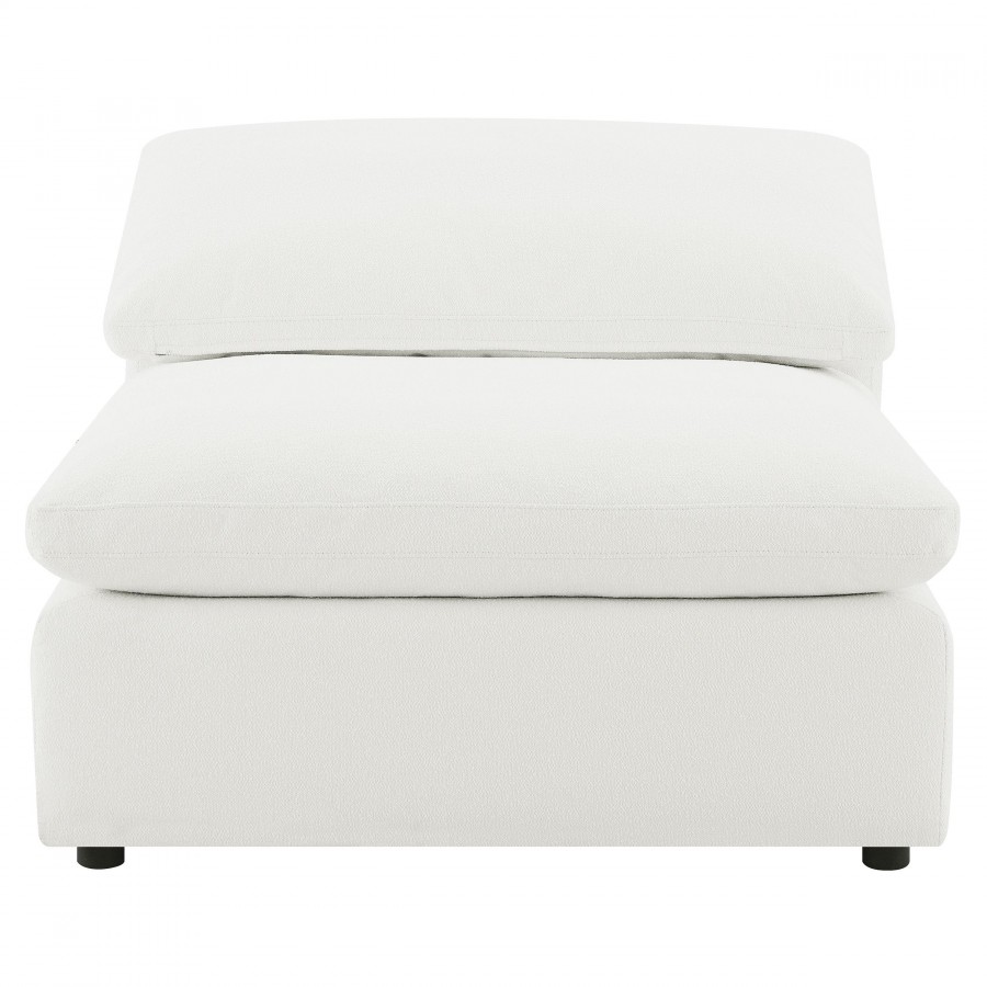 Create the perfect configuration for your modular sectional with a modern armless chair. It features neutral water-resistant boucle upholstery for an on-trend look and feel that works in a wide range of living spaces. The armless chair connects with additional chairs or corners, creating a custom sectional setup in your living room. Foam cushions pair with feather blend for exceptional comfort and a plush feel you'll love when lounging. A loose pillow back completes the look.