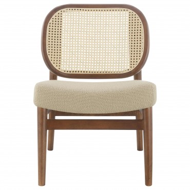 This accent chairs introduces a warm, airy presence to any living area. Lounge chair features a rattan open cane webbing back that breathes natural style and a fabric upholstered cushioned seat for soft, supportive comfort. The solid hardwood frame provides timeless stability. Ideal as occasional chair for reading nooks or side chair in conversation areas, this piece blend casual elegance with functional seating.