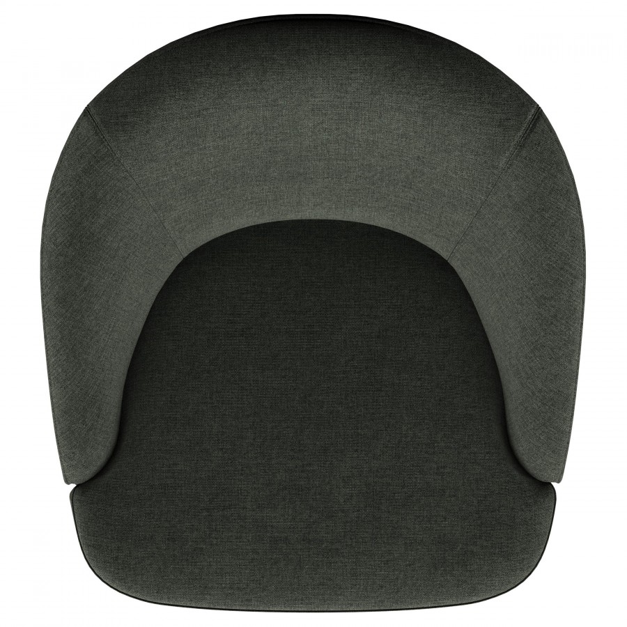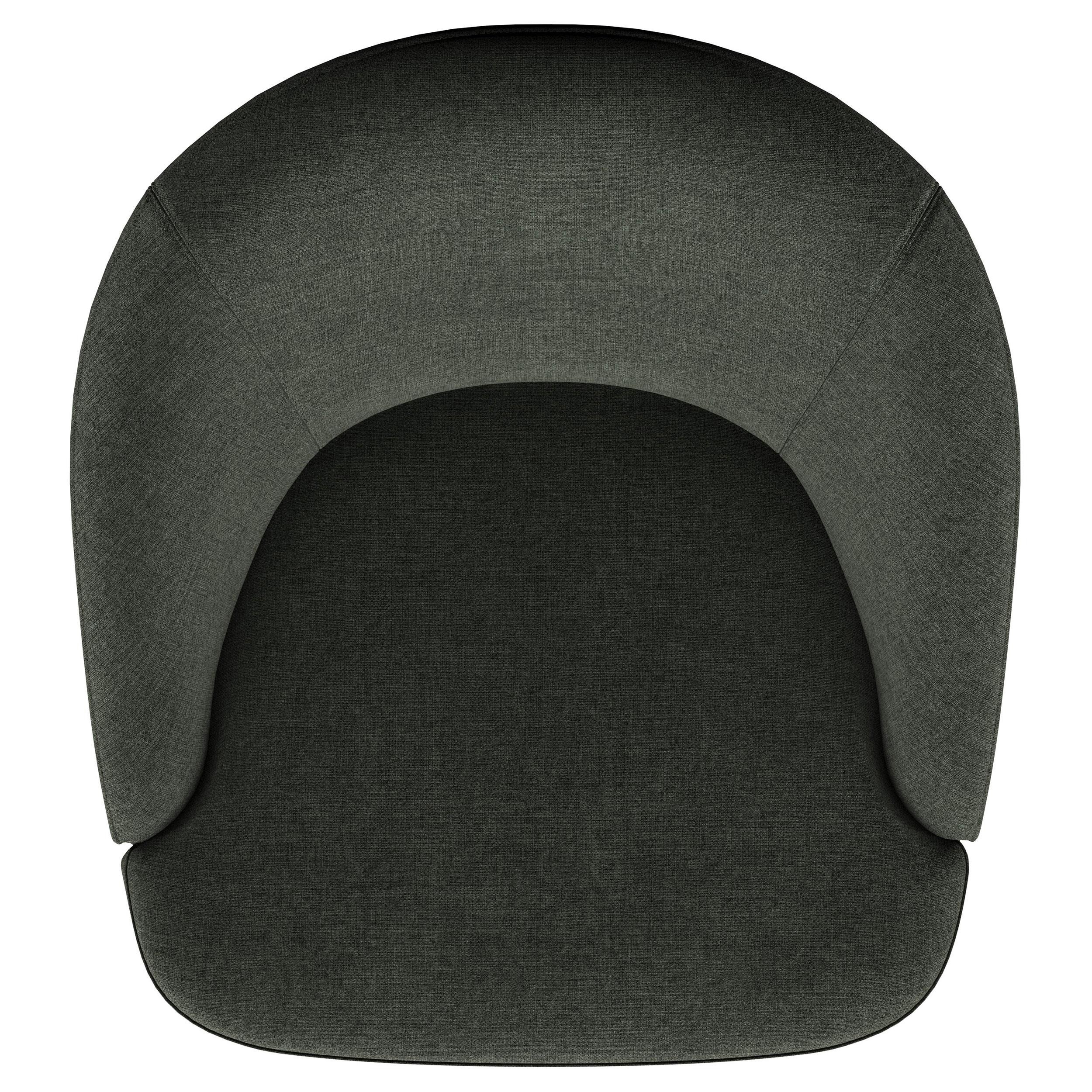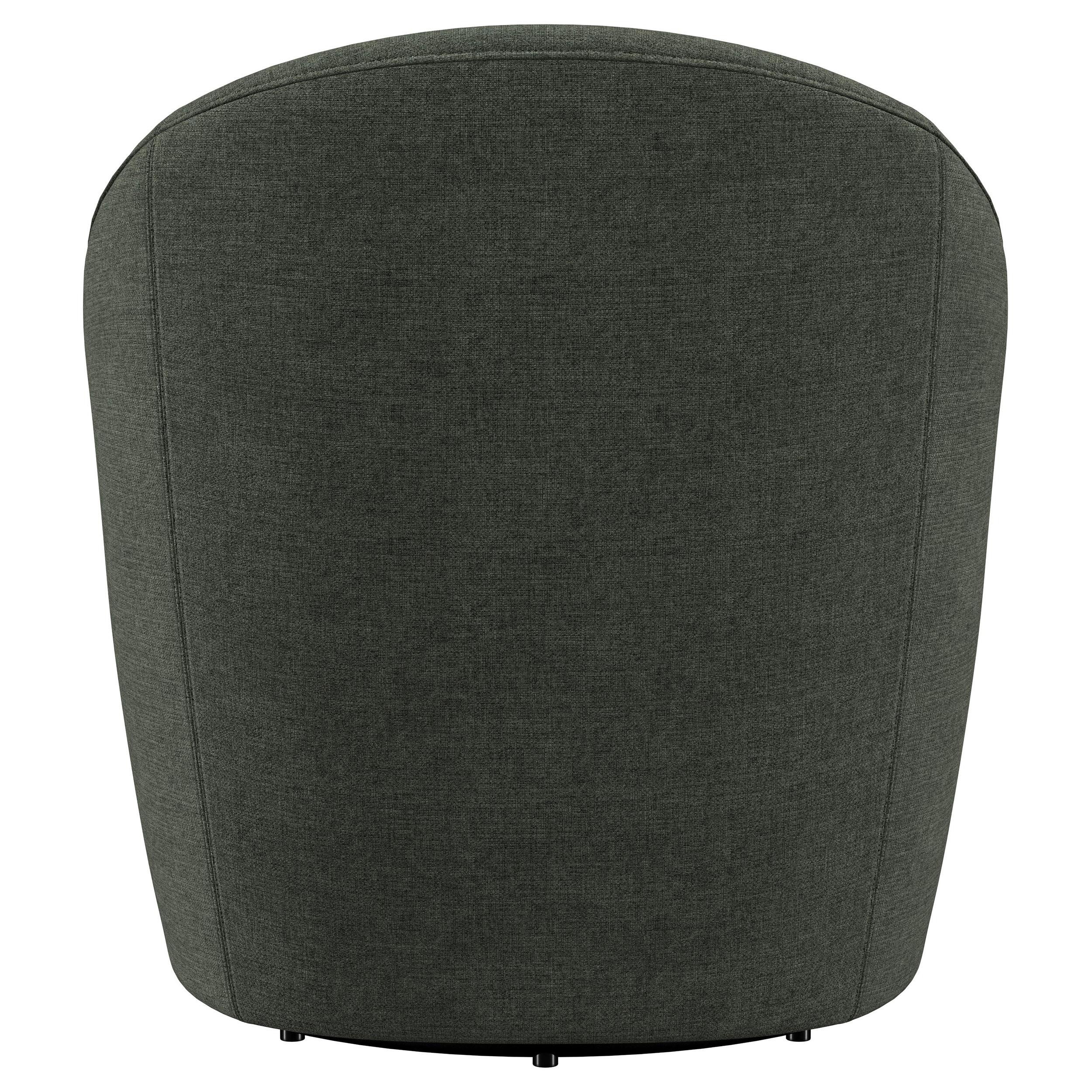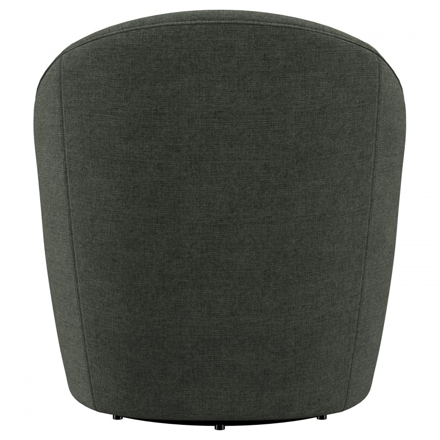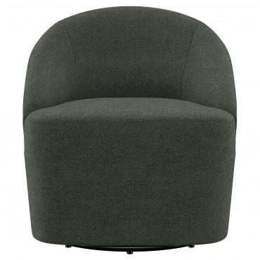Upgrade your living room or den with the cozy, modern character of an upholstered accent chair. It swivels, encouraging conversation and offering versatility in a multifunctional living space. The chair is a take on a classic club silhouette, featuring a rounded barrel back that offers plenty of support and comfort. Soft upholstery complements in living areas and dens to equally stylish effect. The chair offers its full swivel with a metal base that adds a black finish that's unobtrusive and neutral.