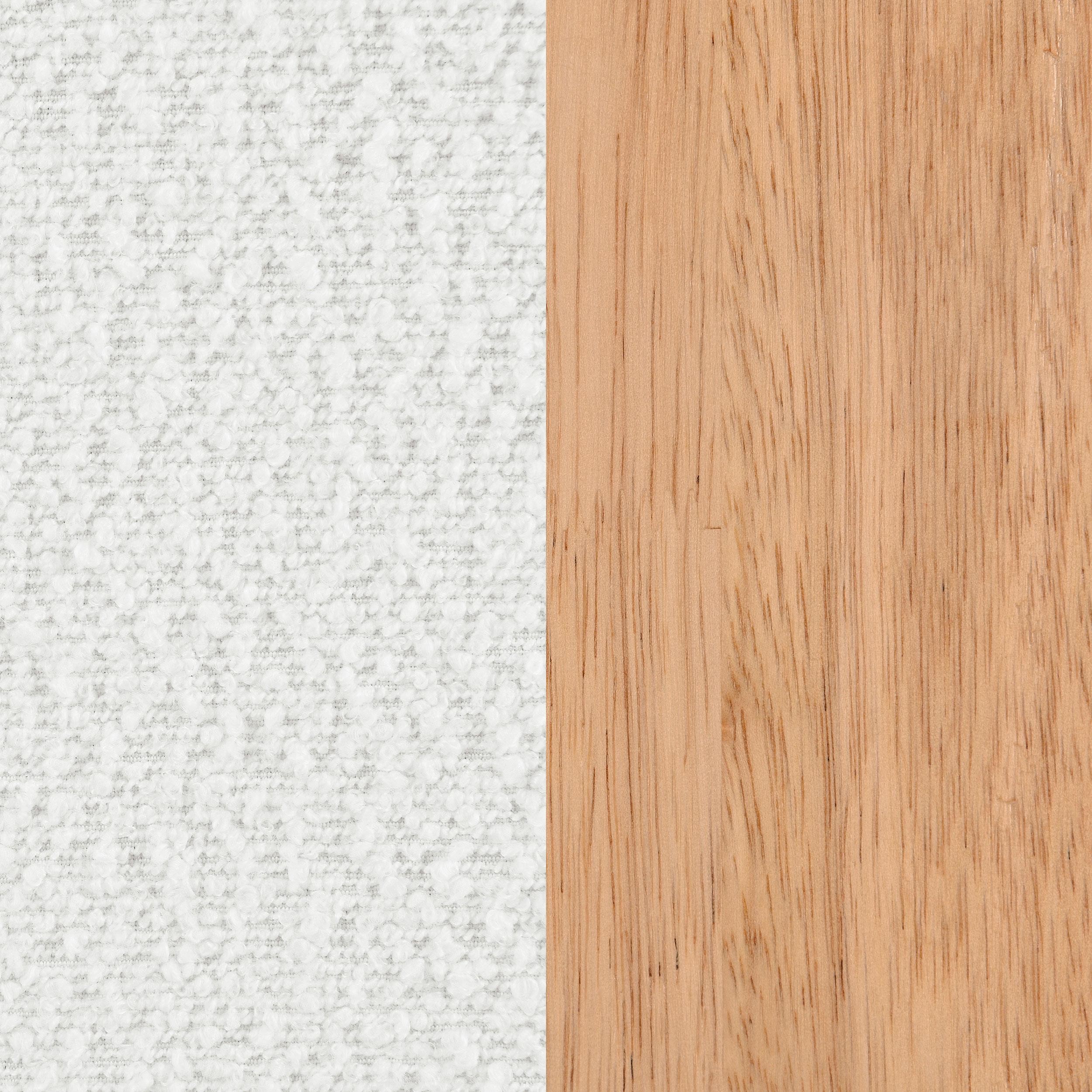 Exposed wood armrests add a sense of precision and structure to a modern accent armchair. It's a fresh, refined look with a neutral palette and minimalist allure. A slightly reclined seat and back create an inviting silhouette for the chair, which blends beautifully in personal and professional settings. Boucle upholstery is fresh and contemporary, offering impressive texture and depth. Add an accent pillow for a splash of color that coordinates with surrounding decor.