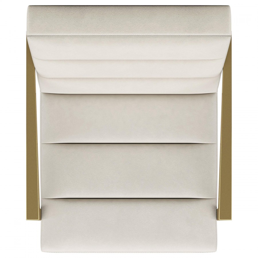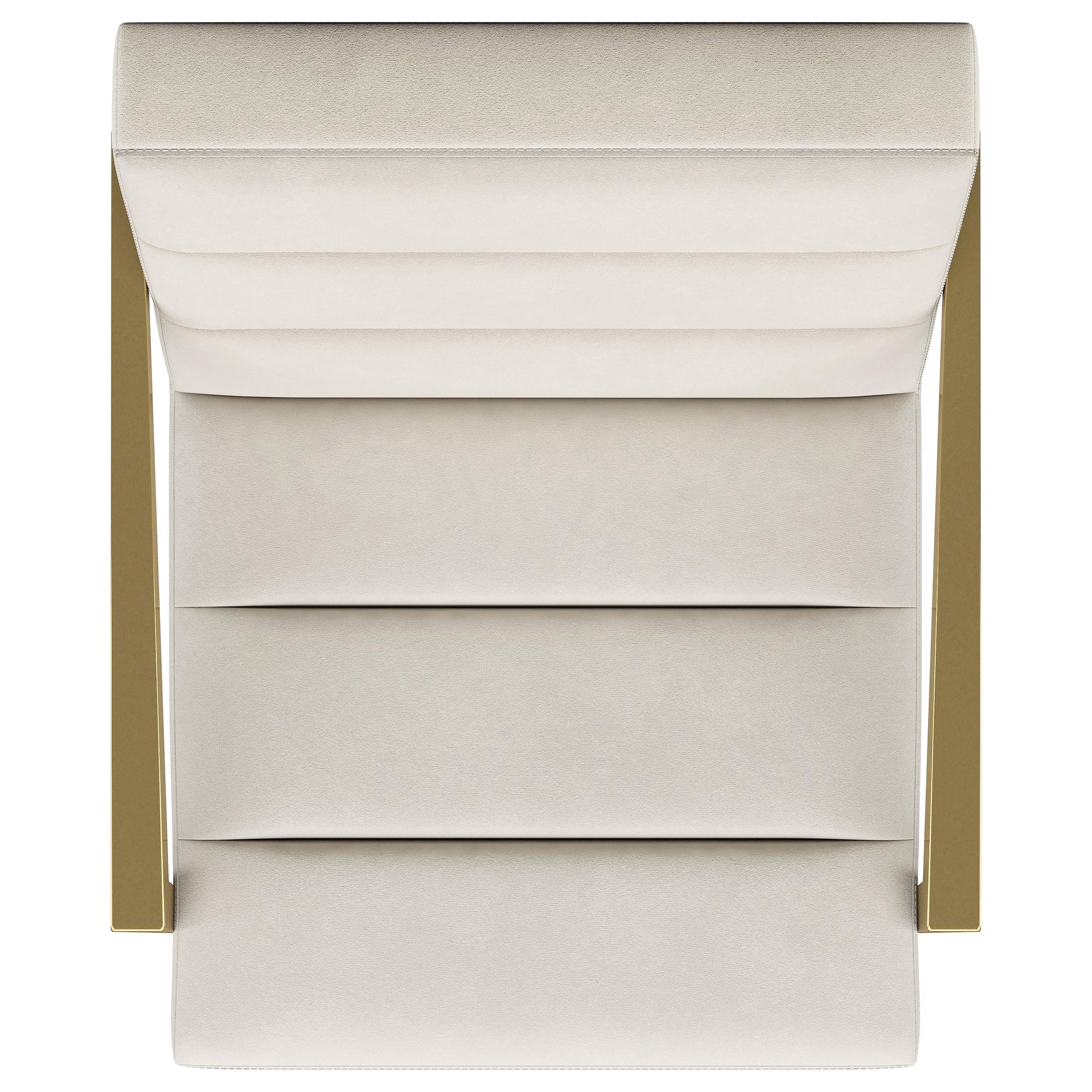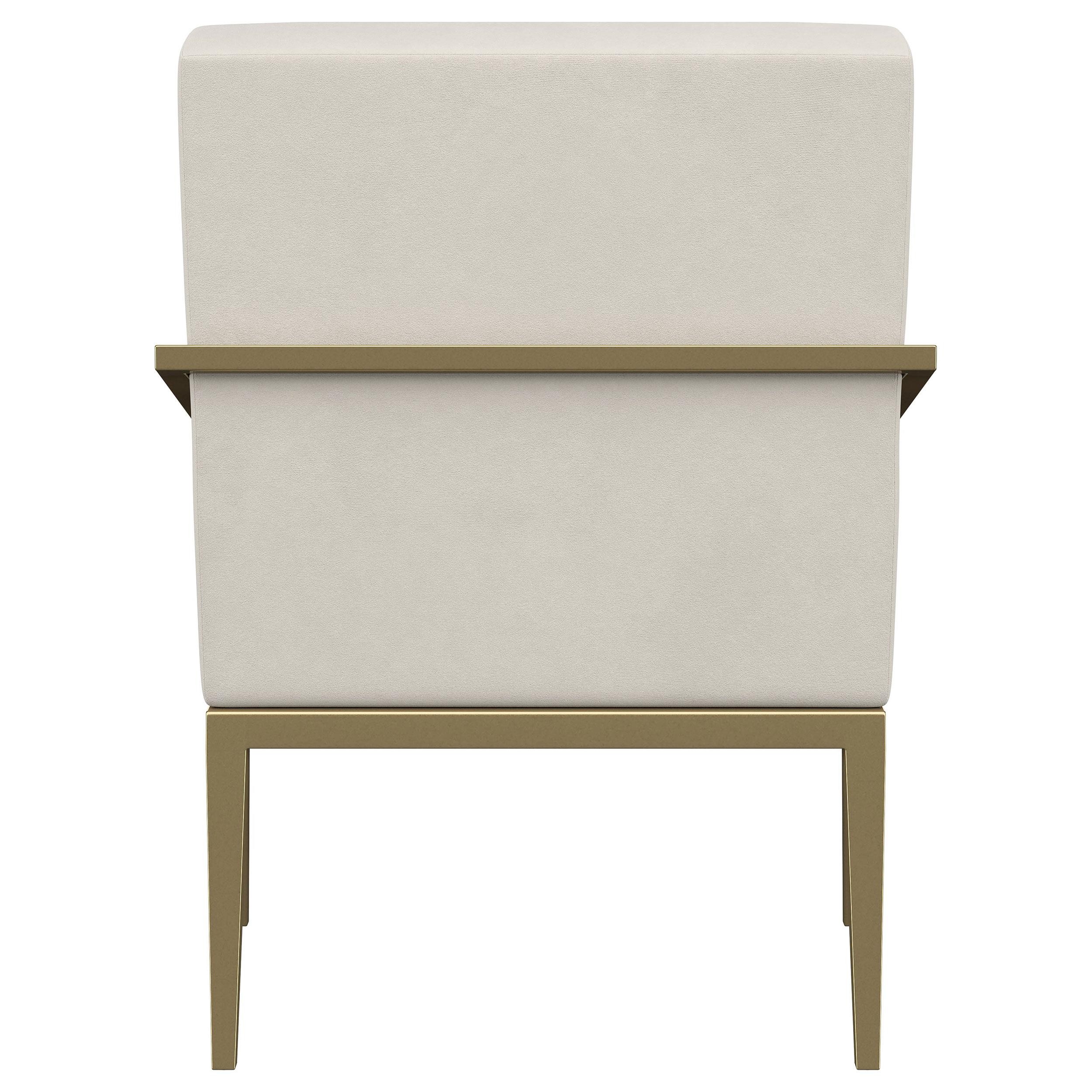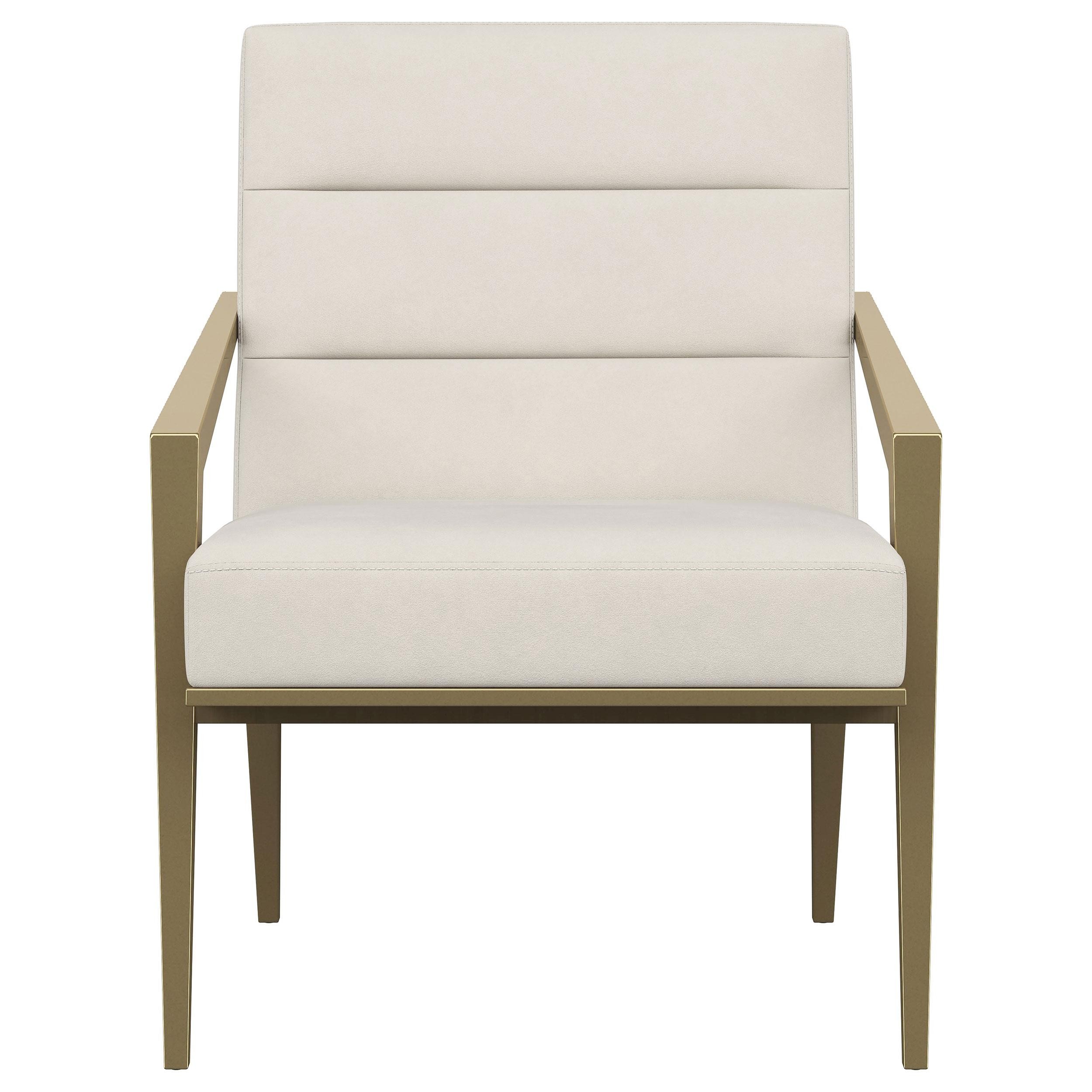 Restrained, modern style meets elegant artistry in a striking contemporary armchair. Designed to stand out, it boasts an upholstered seat and back with a metal frame and arms. The streamlined look receives a gleaming gold finish, adding sophistication anywhere from a sophisticated living room to a refined reception area in a professional space. Sloping, tapered arms define its silhouette, creating an accent chair that's sure to stand out. Channel tufting accents foam cushions, creating a sense of depth and dimension you'll appreciate in any setting.