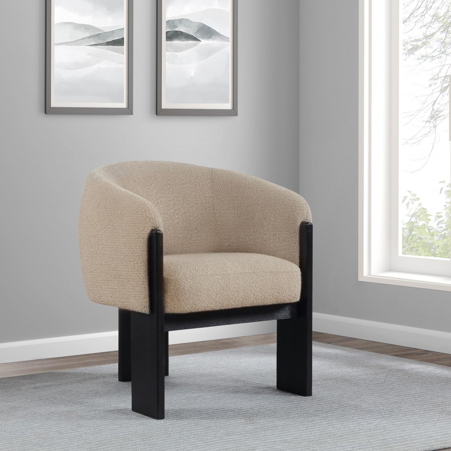 Valdez Boucle Upholstered Barrel Back Accent Chair Beige