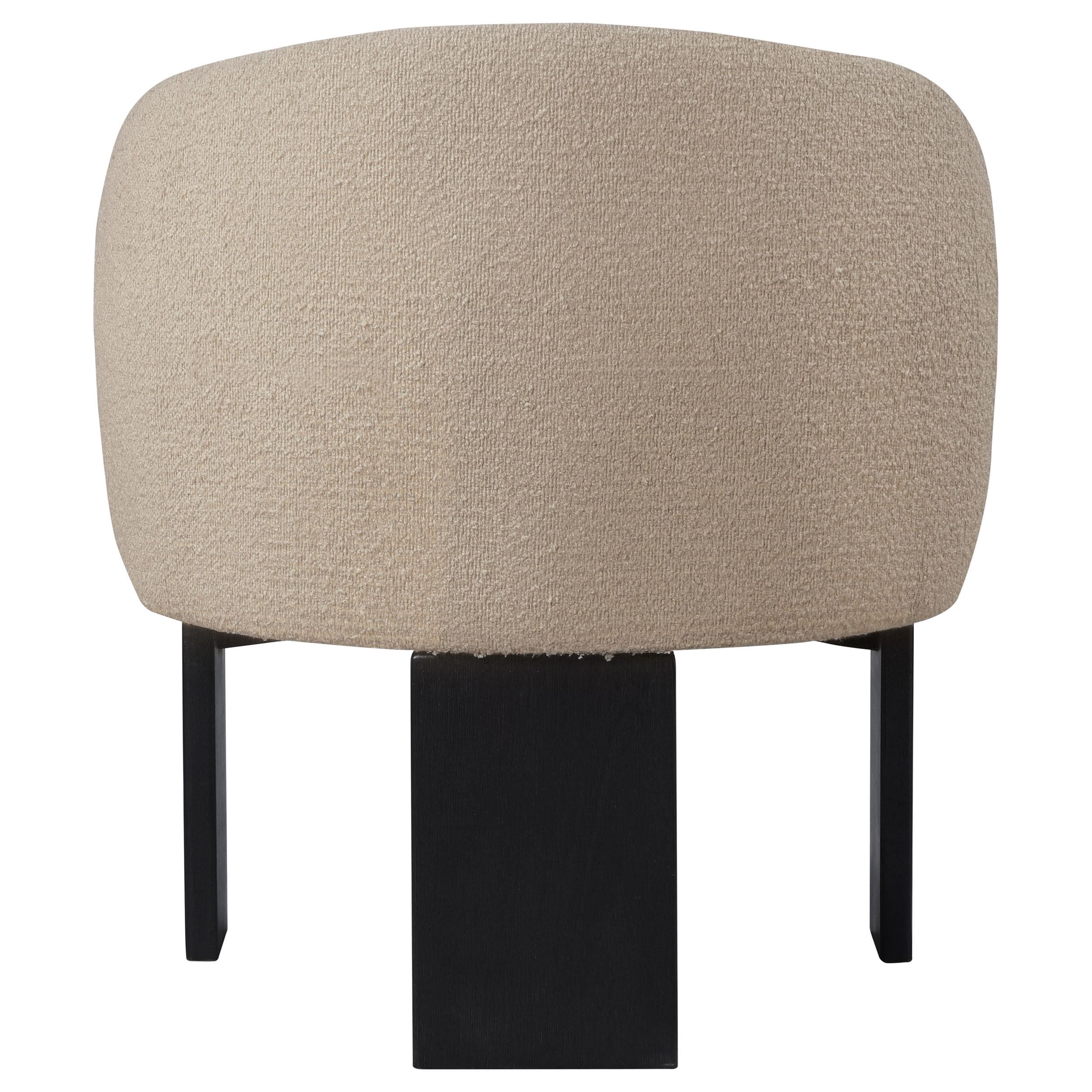 Bring updated style and sophistication to your living room or den with a modern accent armchair. It boasts an inviting rounded silhouette with sloping arms. Three legs in a black finish add a sculptural sensibility. Textured boucle upholstery creates rich texture and depth, perfect for entertaining or lounging. Enjoy the plush softness of foam cushions in any setting.