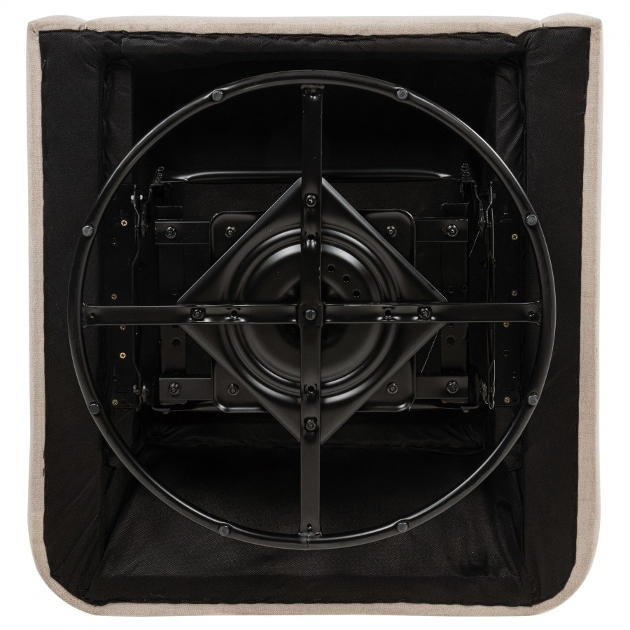 Comfort flows from every angle in this swivel accent chair. With gently sloped arms and a tall, tailored backrest, it wraps the body in a soft, supportive shape. Upholstered in smooth fabric and mounted on a black metal base, it glides with ease to match your movements. Clean edges, plush cushioning, and fluid form blend practicality with understated romance—making it ideal for nurseries, reading nooks, or refined lounge spaces.