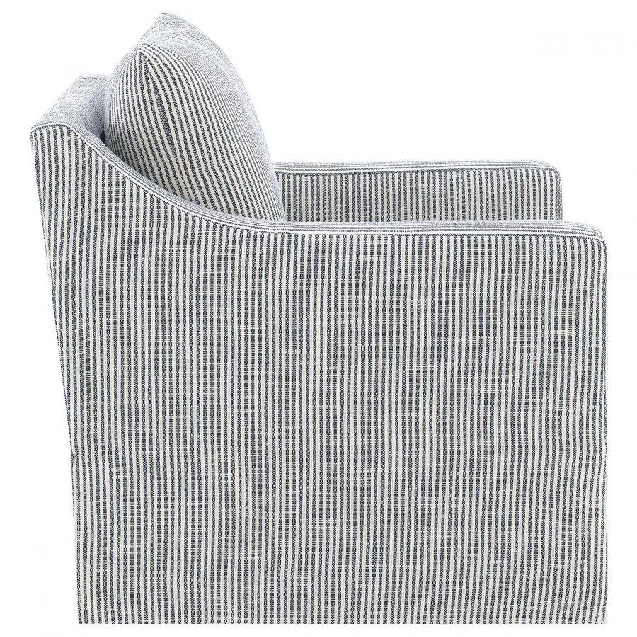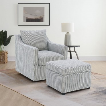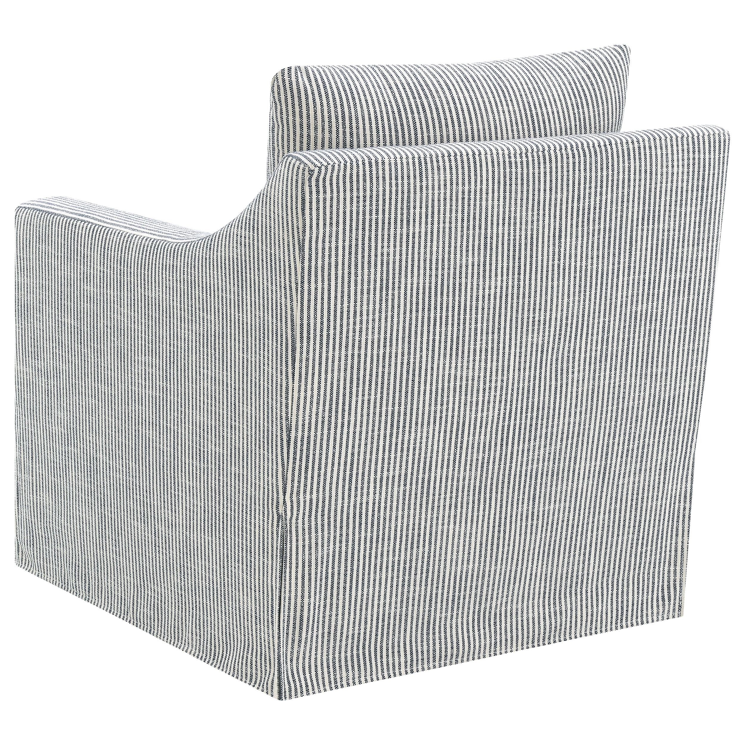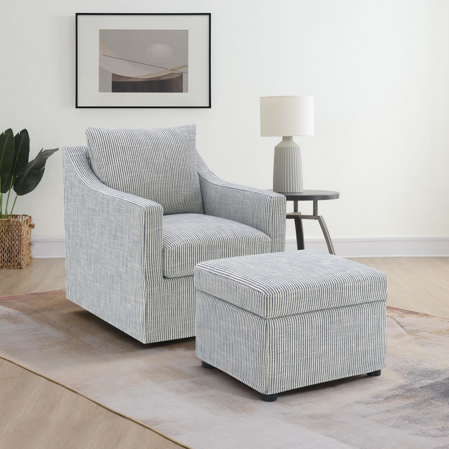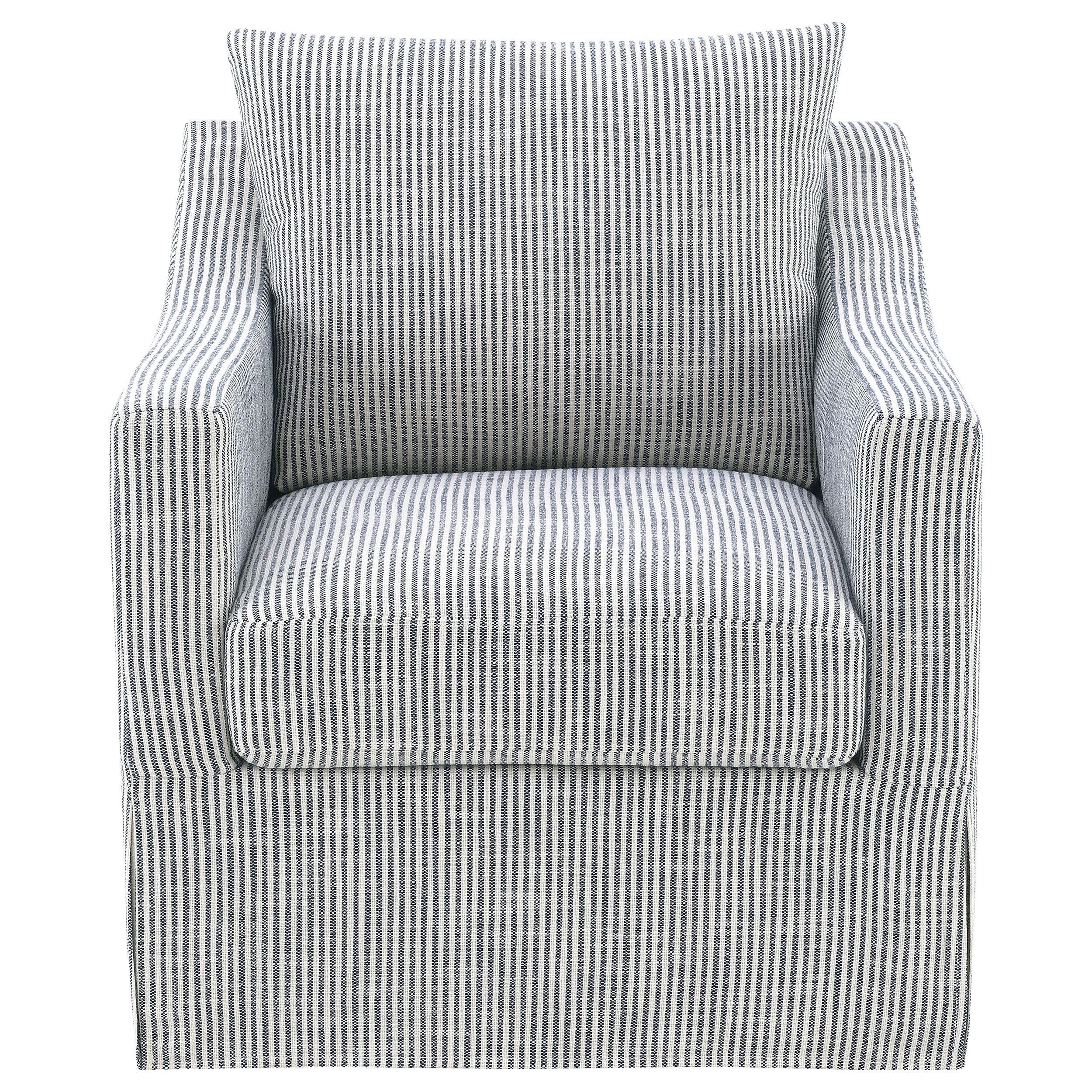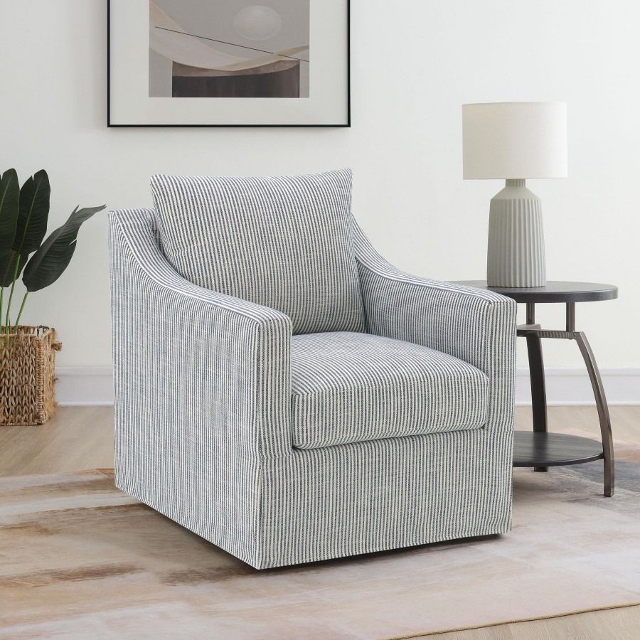 This swivel accent chair complements living room décor with its neutral fabric and streamlined silhouette. Perfect as lounge seating or an occasional chair, it offers a gentle, 360-degree swivel for relaxed conversation or quiet reading. Its plush seat and transitional flair enhance the comfort and style of your home, blending subtle elegance with everyday versatility.