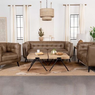 Thatcher Upholstered Tuxedo Arm Tufted Accent Chair Brown