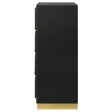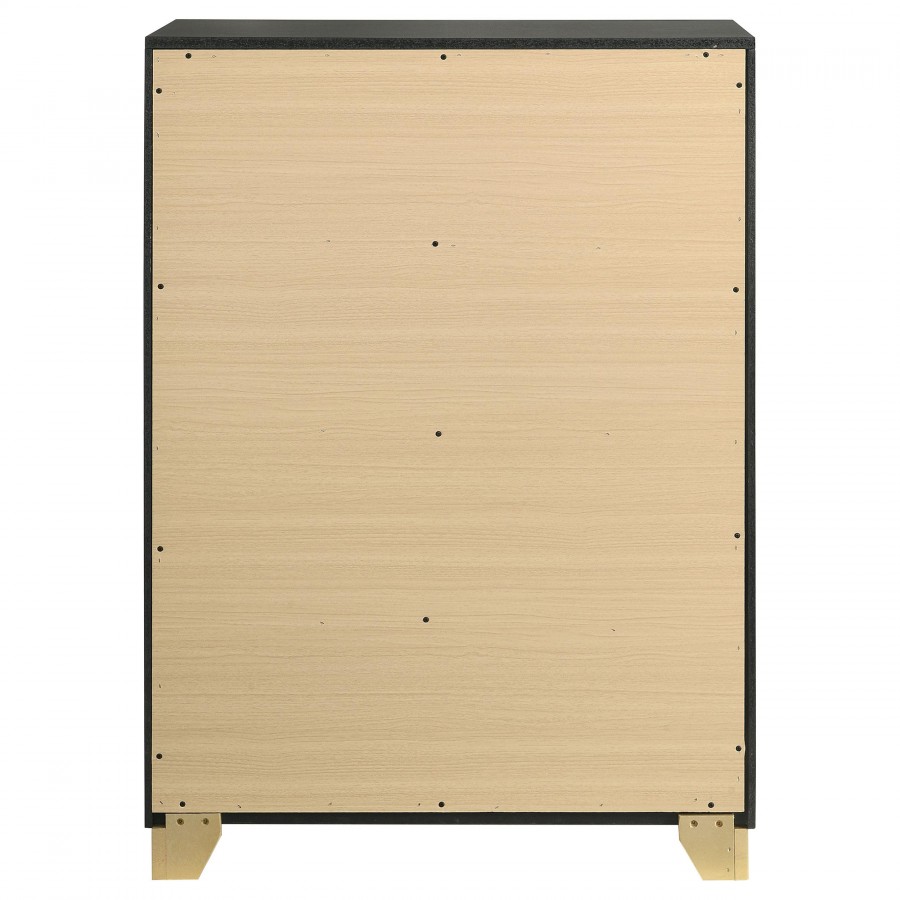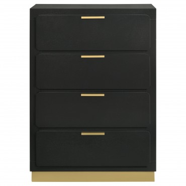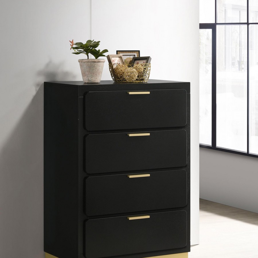 Modern luxury with a minimalist look offers a perfect fit for updated bedrooms as the four-drawer chest enhances a sleek master suite or guest bedroom. Wood and wood products construct a dresser with clean lines and a stylish Mid-Century Modern vibe. This chest offers simplicity with sleek elegance, as accents include straight drawer handles and a matching base. Spacious drawers operate smoothly on center drawer glides. Choose this chest for its versatility and convenience, accompanying either matching or coordinating pieces to pull a statement-making look together.