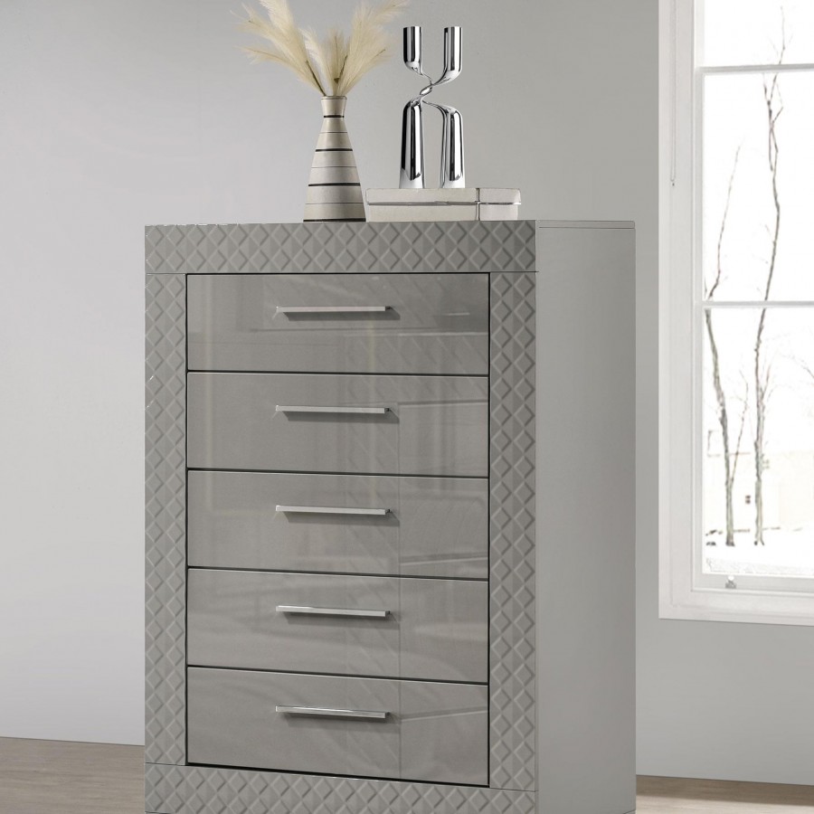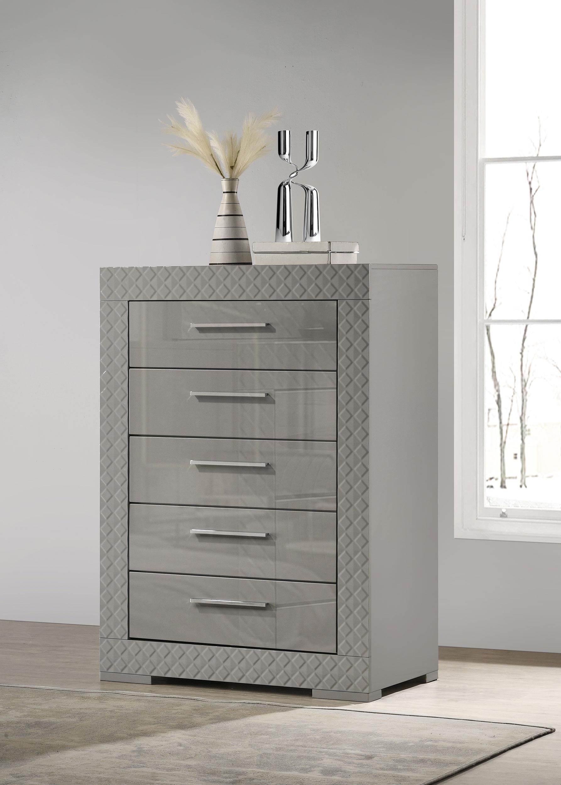 Ives 5-drawer Bedroom Chest of Drawers Grey High Gloss