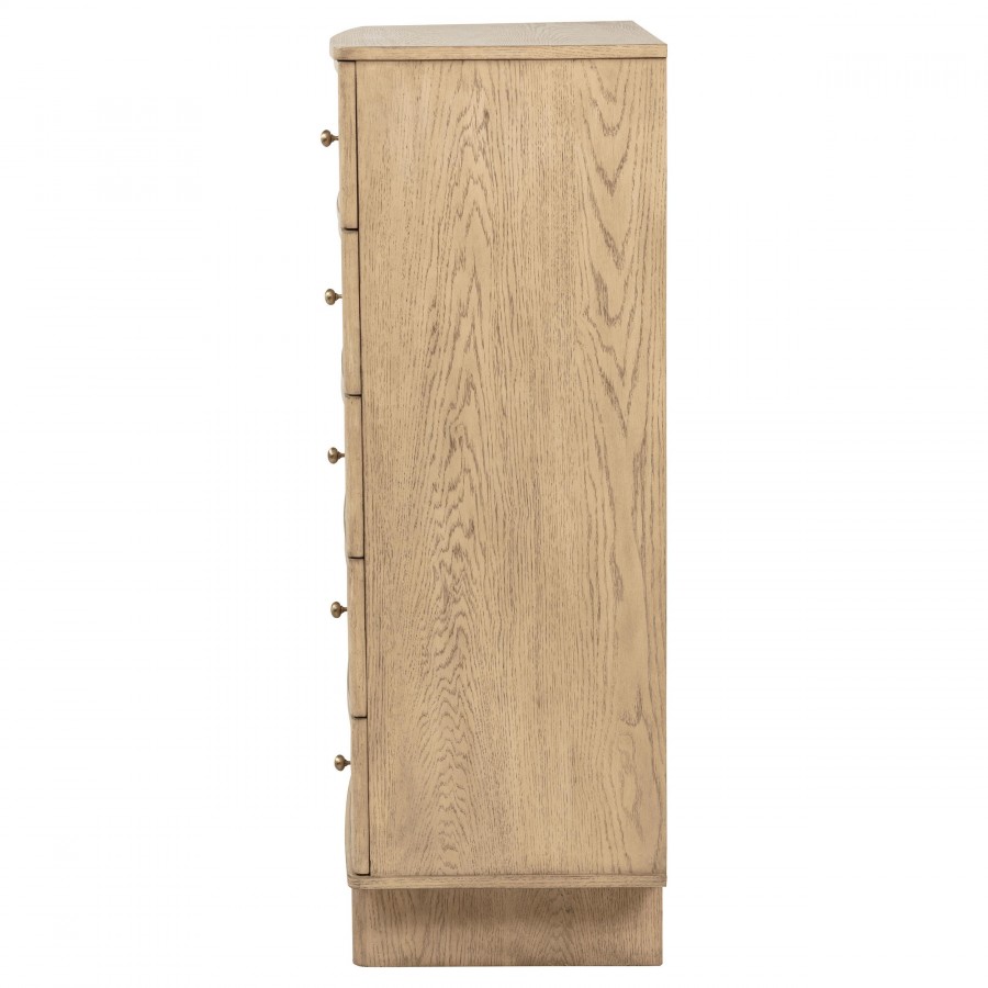 This five-drawer chest is the perfect blend of practicality and style, offering ample storage for your bedroom while enhancing its overall aesthetic. The beige oak finish exudes natural warmth, while the smooth metal extension glides ensure easy access to your belongings. With antique brass hardware adding a subtle vintage touch, this chest brings an air of timeless elegance to any space. Built with quality materials, it is both durable and stylish, making it a lasting addition to your home.