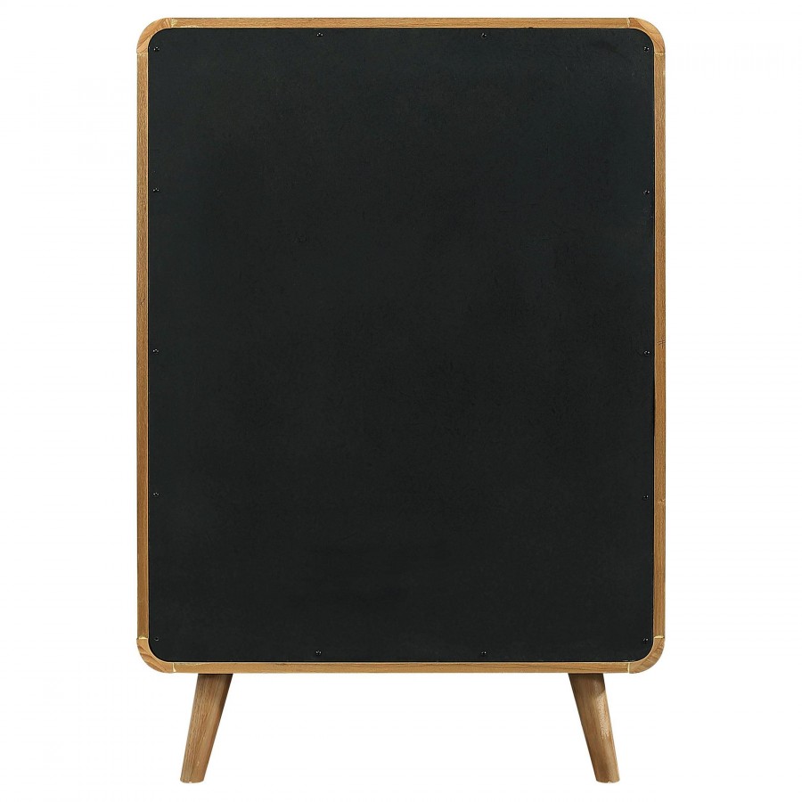 Stylishly organize your wardrobe with this mid-century modern chest of drawers, built with rubberwood, engineered wood, and ash veneer for durability and style. Featuring five spacious drawers, it offers ample storage for clothing and accessories. Rounded edges and tapered legs lend retro flair, while felt-lined top drawers add a touch of functionality. Smooth drawer glides and subtle metallic hardware complete this elegant storage piece.