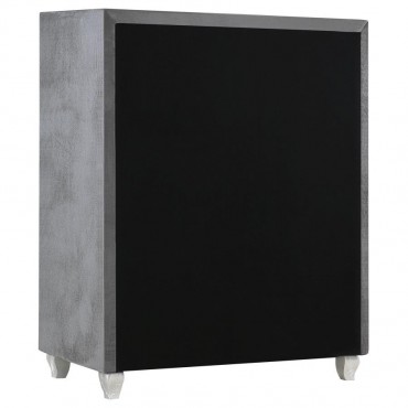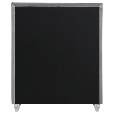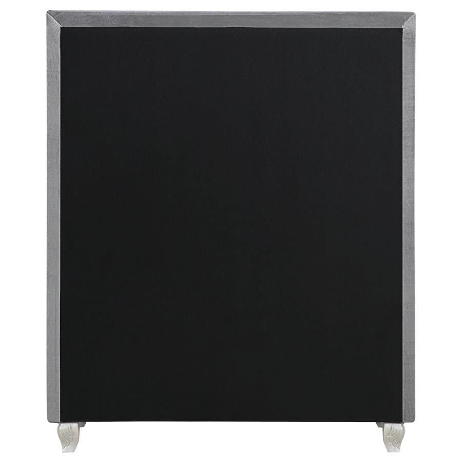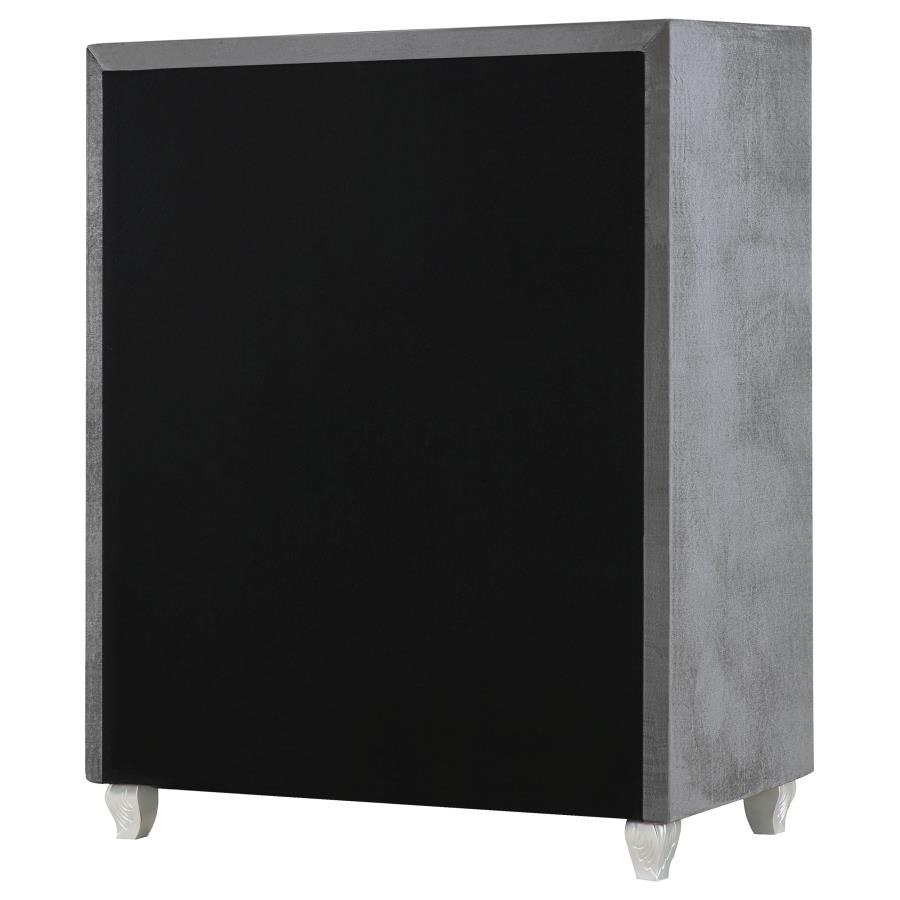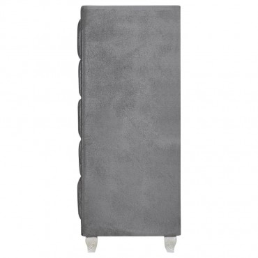 Dress up your space with chic, modern luxury. Exquisitely designed, this stylish chest makes any bedroom look more glamorous. Its front is adorned with trendy button tufting. Its frame is enhanced by a stunning, shining, grey metallic finish. With five large drawers for spacious storage, it's as practical as it is beautiful.