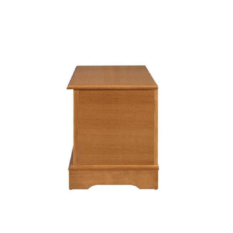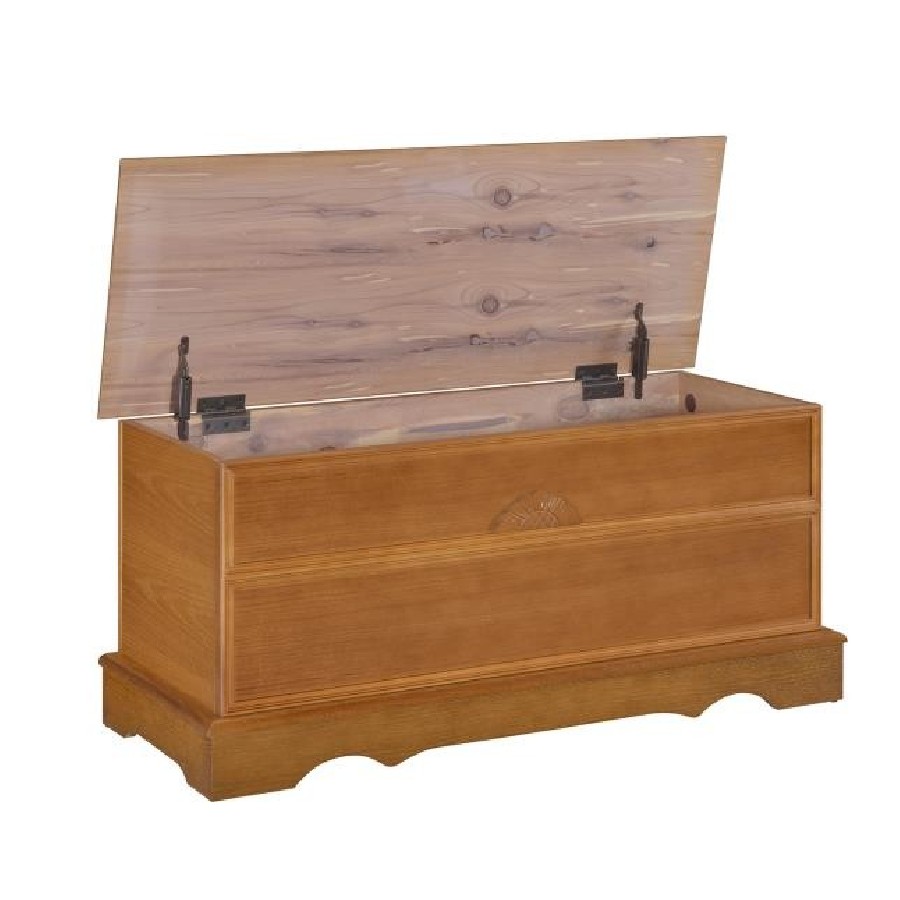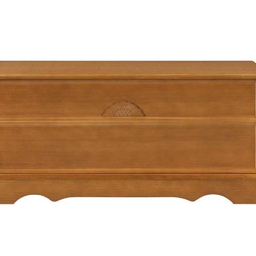 A wood storage chest brings character and practicality to any room of the house. This engineered wood chest is constructed to be durable and crafted with simple, elegant lines. It is sufficiently spacious for all your seasonal bed linens, family heirlooms, or photo albums. The finish is gorgeous in a bright sunny bedroom, adding warmth and charm to your home.