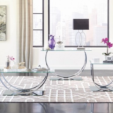 This contemporary rectangular coffee table features a clear tempered glass top and a sleek tempered mirrored base for a polished and modern appeal. The elegantly curved frame, crafted from electroplated heavy gauge metal in a chrome finish, enhances its sophisticated look. Its durable materials and refined structure make it ideal for living rooms, providing a striking centerpiece while ensuring lasting quality.