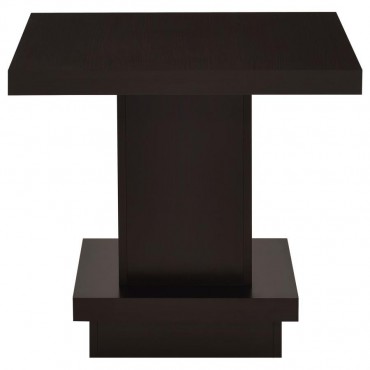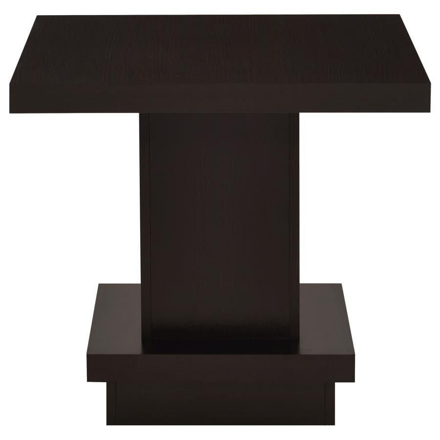 This square end table combines modern design with functional appeal, making it a versatile addition to any space. Constructed from engineered wood and finished with a scratch-resistant laminate veneer, it features a sleek cappuccino finish that exudes contemporary elegance. The bold, tiered silhouette creates a striking look while providing stability. Perfect as an accent table, it offers a spacious surface for decor or essentials, enhancing your living room's overall style.