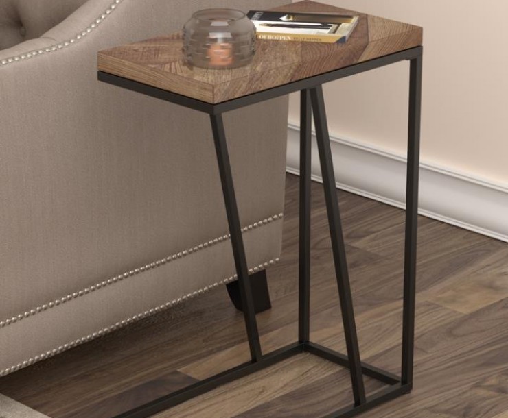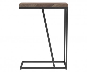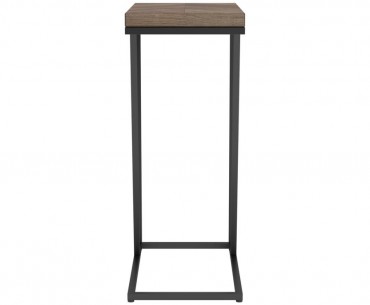 This versatile C-table seamlessly blends modern design with functional utility, ideal as a side table or chairside table. Featuring a wood-look top crafted from engineered wood with a scratch-resistant laminate veneer, it combines durability with style. The sturdy metal base, finished in a sandy-textured black powder coat, provides lasting stability. Perfect for compact spaces, its slim design easily slides under furniture for added convenience.