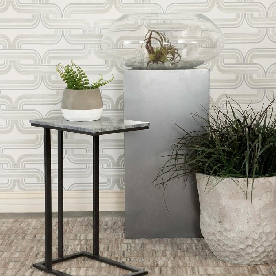 Keep a drink or snack close by as you watch a favorite TV series. This contemporary accent table offers a spacious surface area for mugs, tablets and more with its classically designed marble top. The smooth and polished marble top rests on an iron cantilever style base that extends the top gracefully over a sofa or armchair, inviting you to rest personal devices, drinks and more within reach. The cantilever base also offers a chic aesthetic with its slim tubular design and flush base. Doubling as a laptop stand, this accent table makes a smart addition to seating arrangements, remote work areas and guest bedrooms.