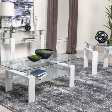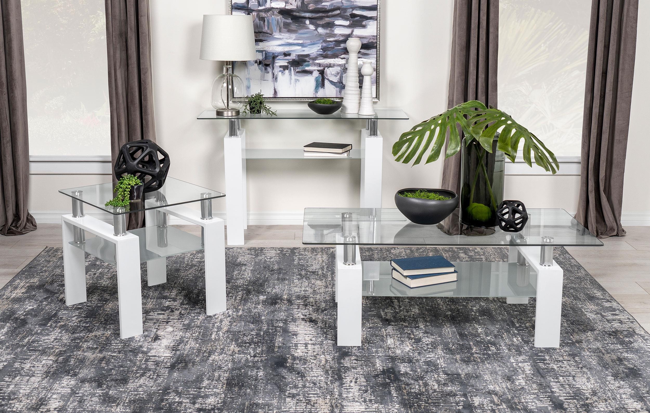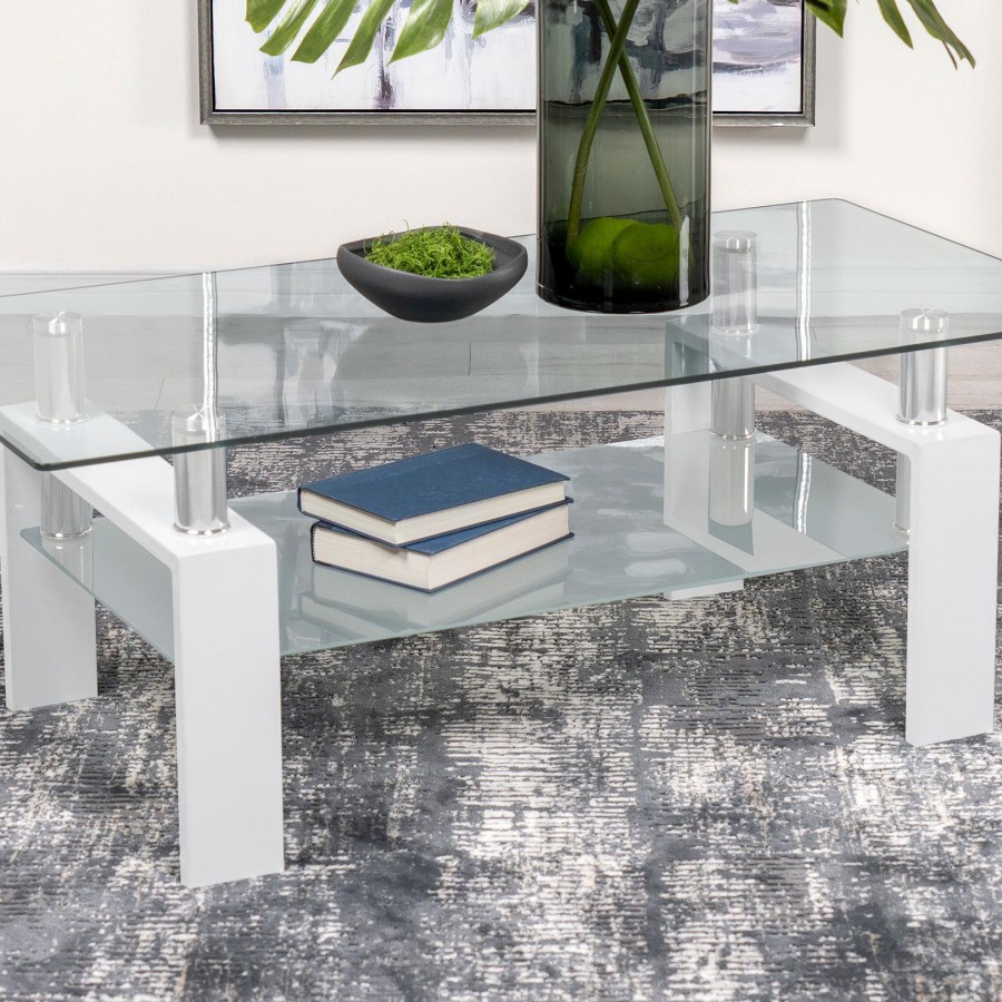 Dyer 1-shelf Rectangular Glass Top Coffee Table White