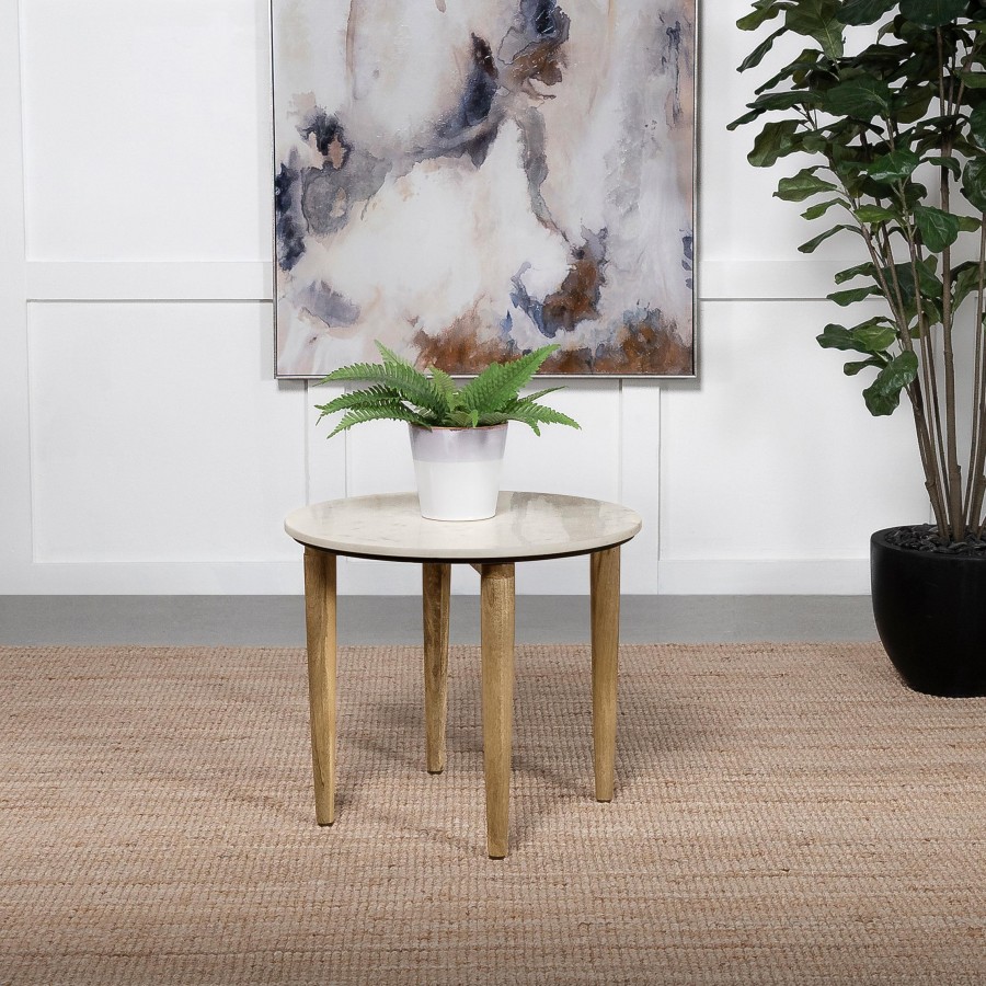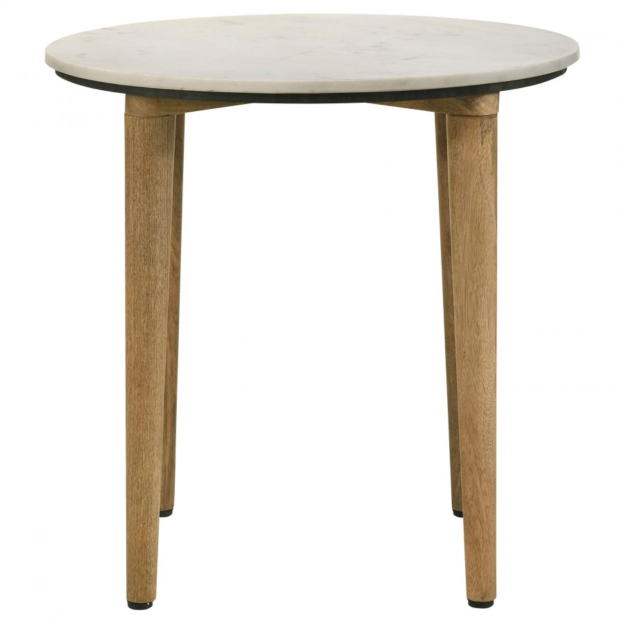 Aldis Round Marble Top Side End Table White and Natural
