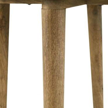 A low-key yet elegant look starts with a hand-crafted round coffee table with earthy tones and plenty of versatility. Choose this coffee table to round out a space with a natural design aesthetic and add a fluid look to a living room or family room. Made in India, this cocktail table is assembled with organic materials including a round white and gray marble top. Its shapely mango wood base features tall, tapered legs. As a handcrafted piece, this table’s marble top will vary in patterning.