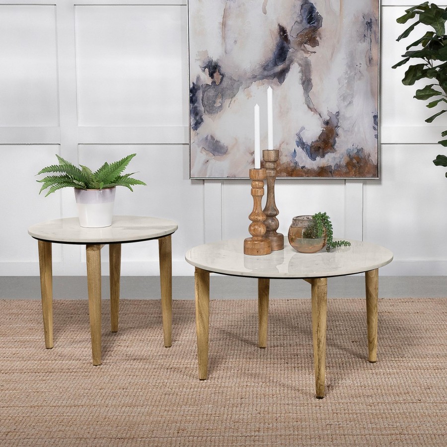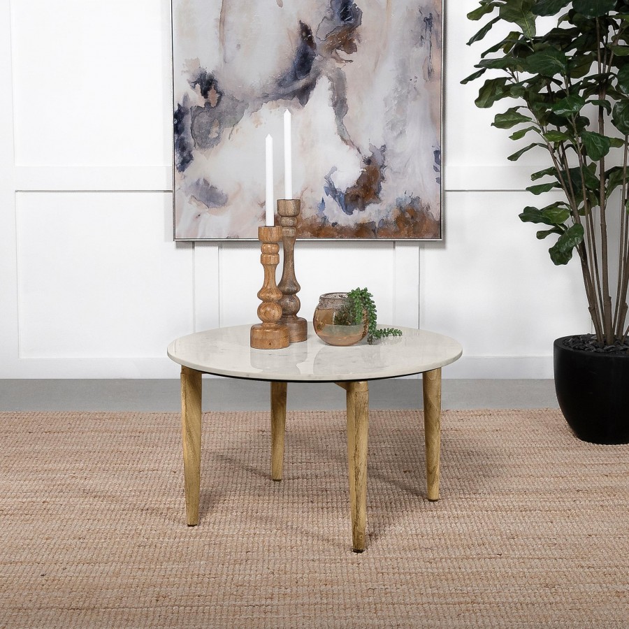 Aldis Round Marble Top Coffee Table White and Natural